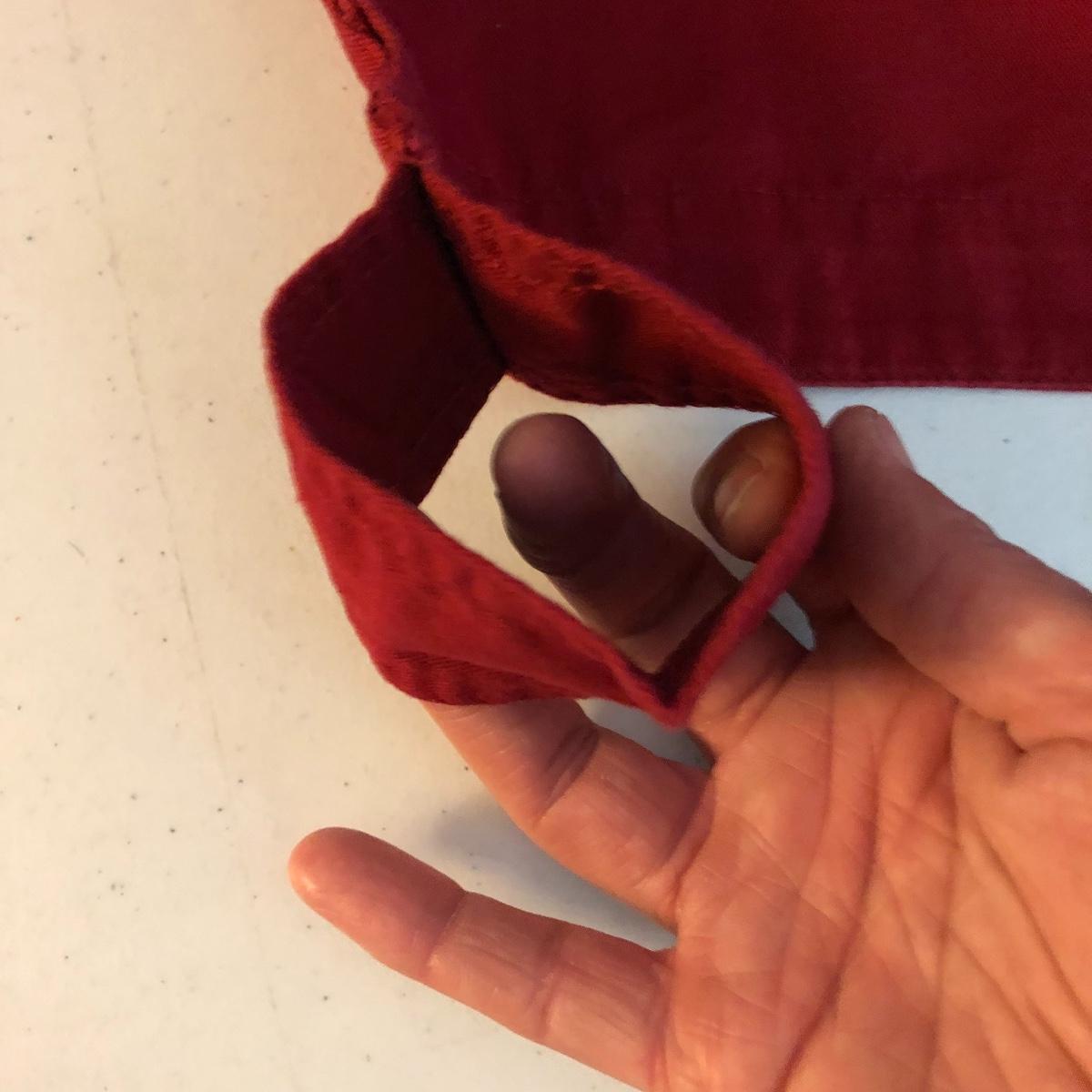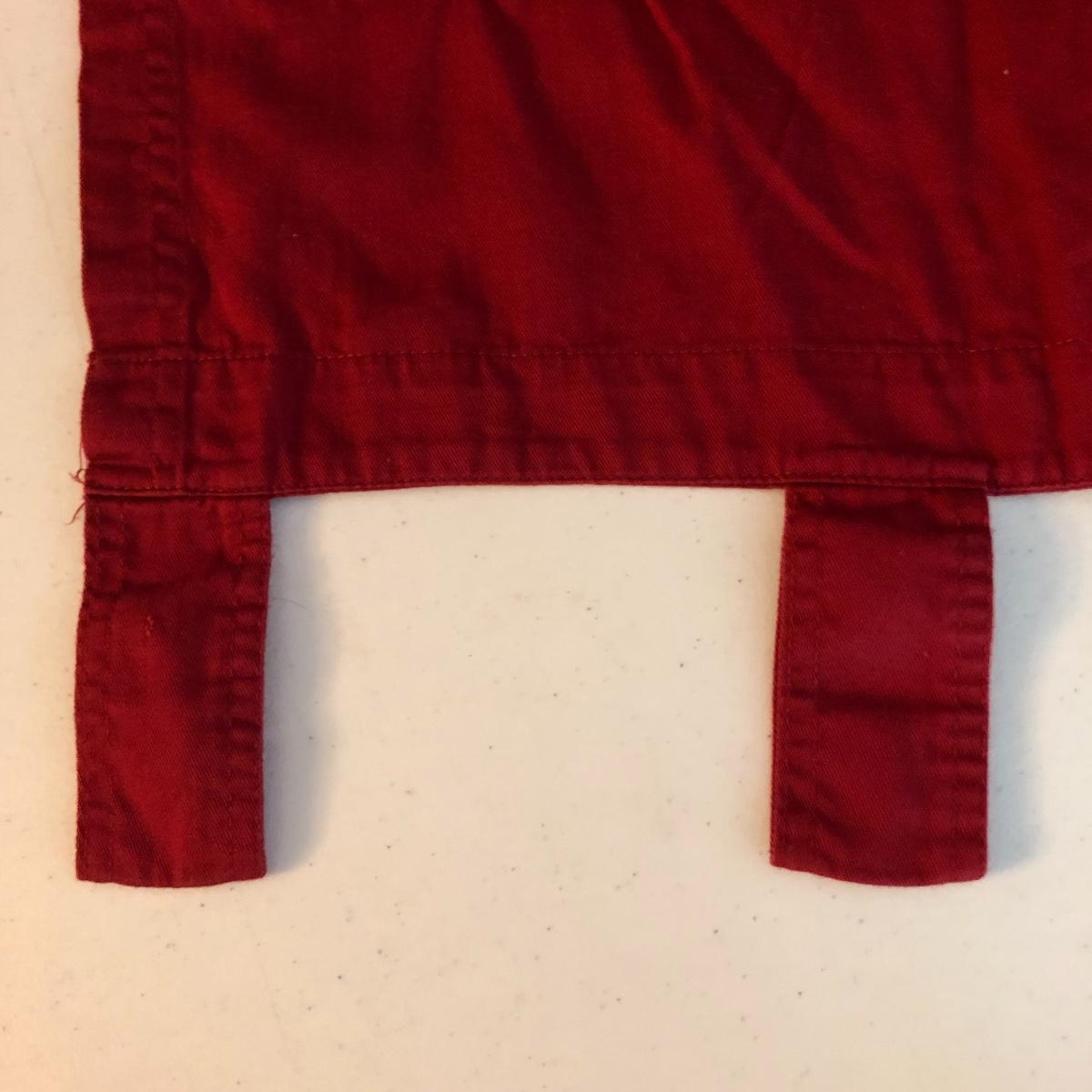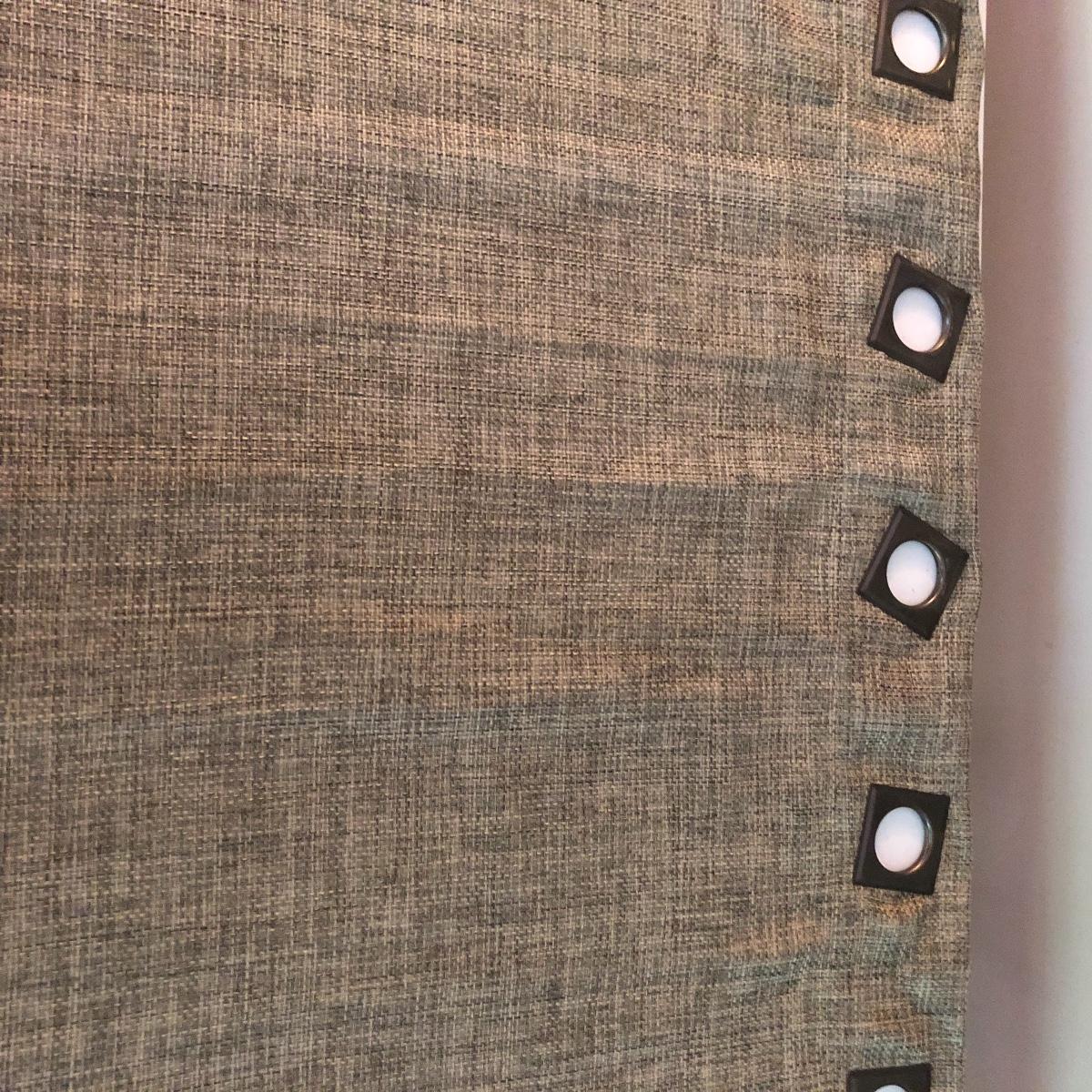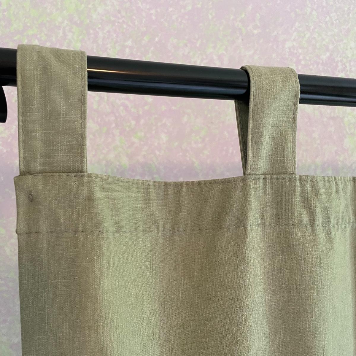 This matching set of nice light olive green woven drapes will work well with most any decor color scheme as they are an attractive and fairly neutral color. They have metal accent grommets where the curtain rod feeds through and both measure 52” x 84”. Lot features a set of four mild olive green curtains measuring approximately 40” x 82” each. Also included is a dark red tab top drape, measurements in image. Shipping available