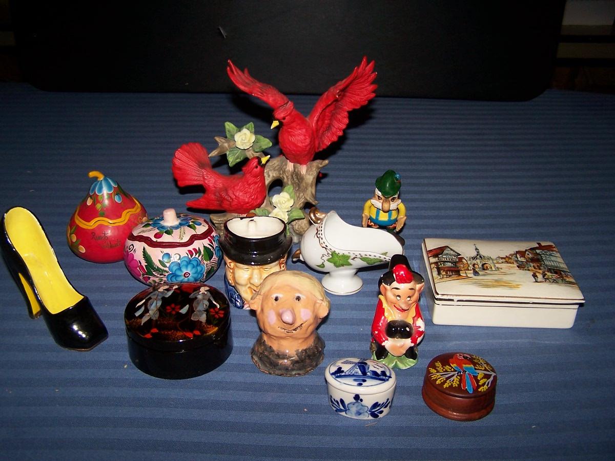 THIS IS GREAT MISC VINTAGE HOME DECOR... THE RED BIRDS ARE 7'' TALL.... LIGHT WEAR...