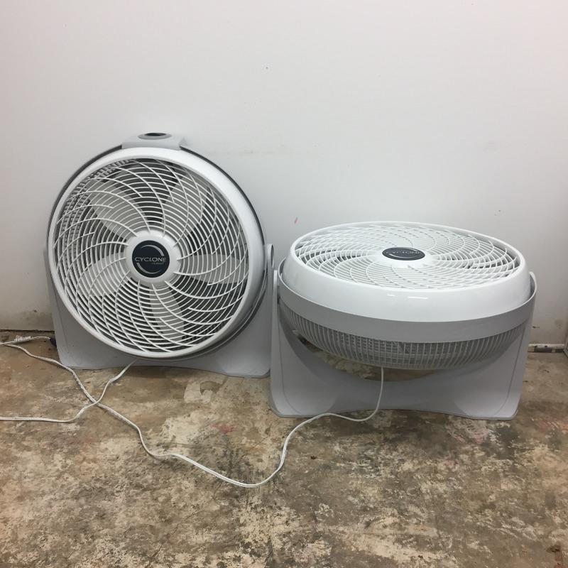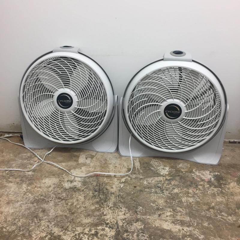 Pair of Lasko 3520 cyclone pivoting fans. Keep your cool with these pivoting fans. Fans measure 20” D.