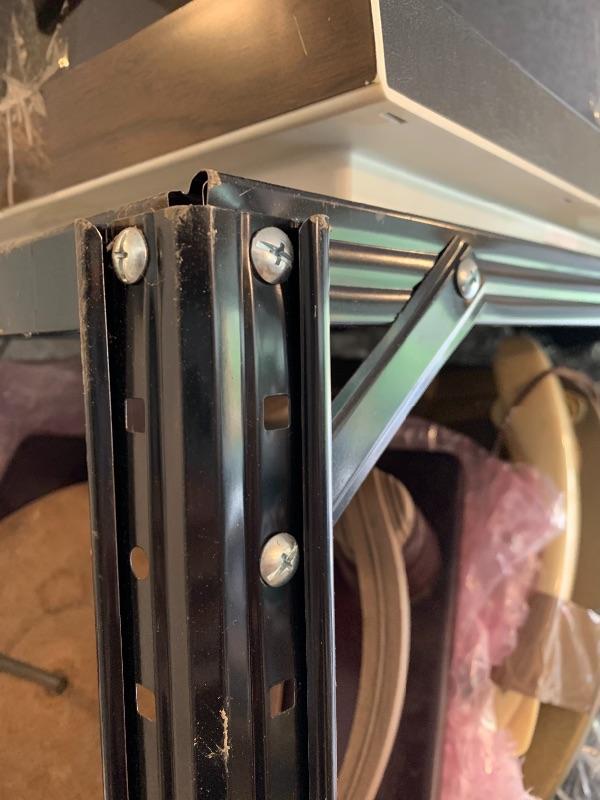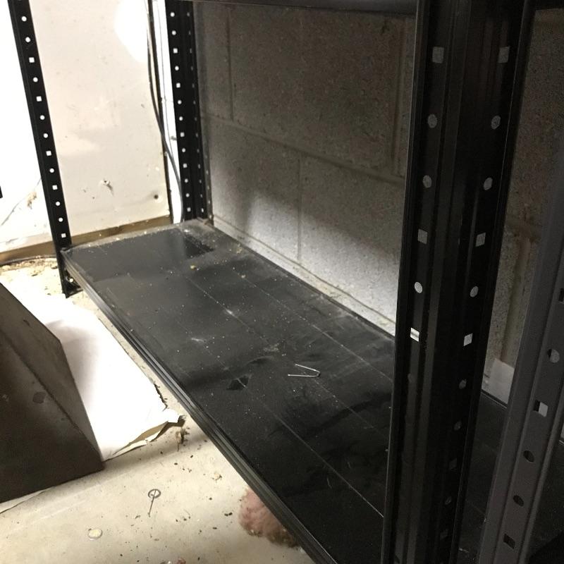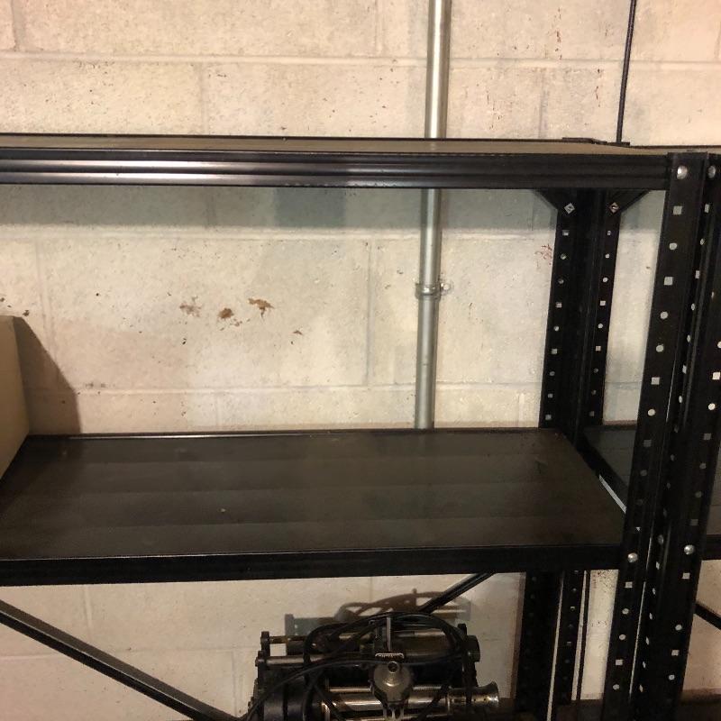 Lots of storage space saving with these 7 black metal shelving units.