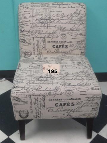 Lot 195 - Upholstered Chair with Paris Word Cluster Pattern