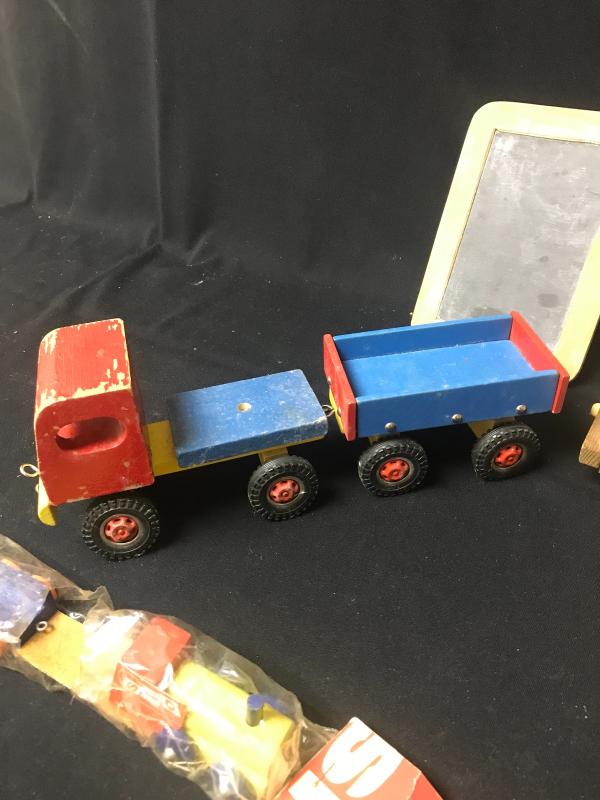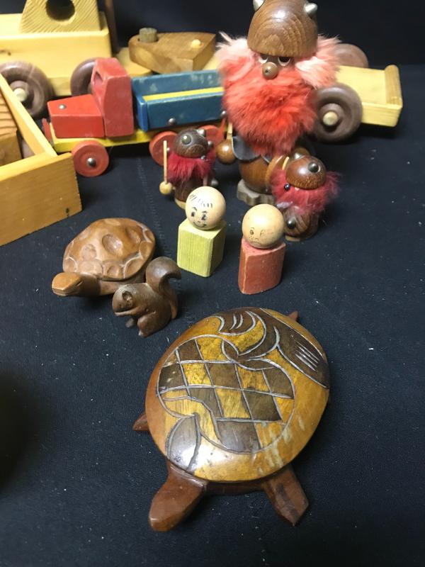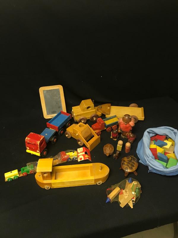 Building blocks, West Germany colorful truck, small animal figurines, Viking figurines and more. For those of you against plastic, we've got you covered! Shipping available.