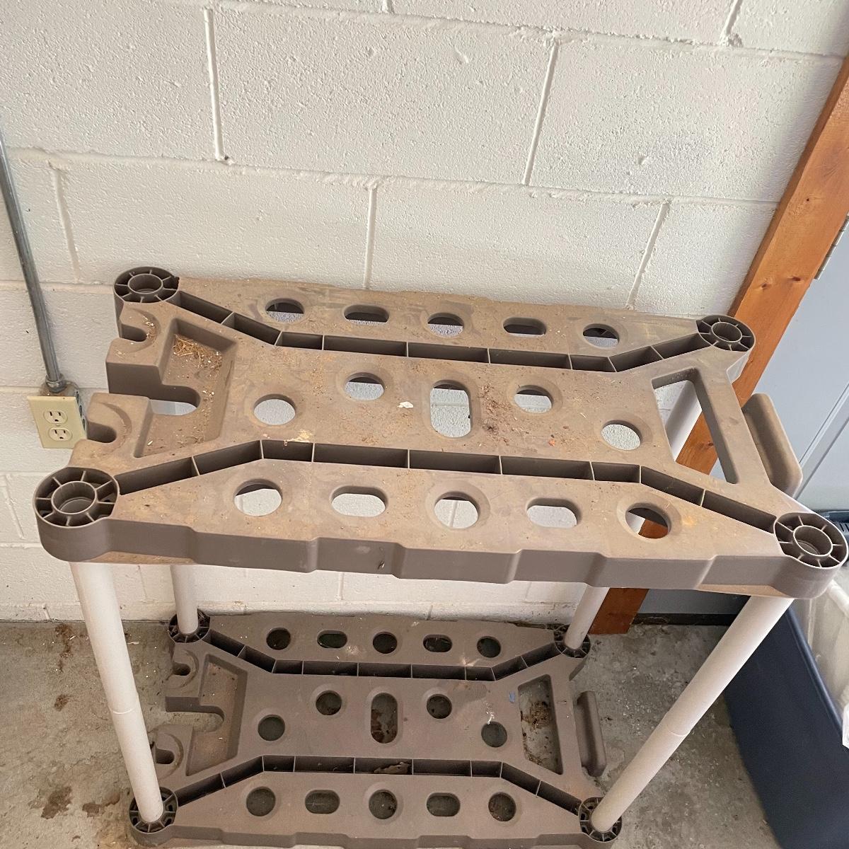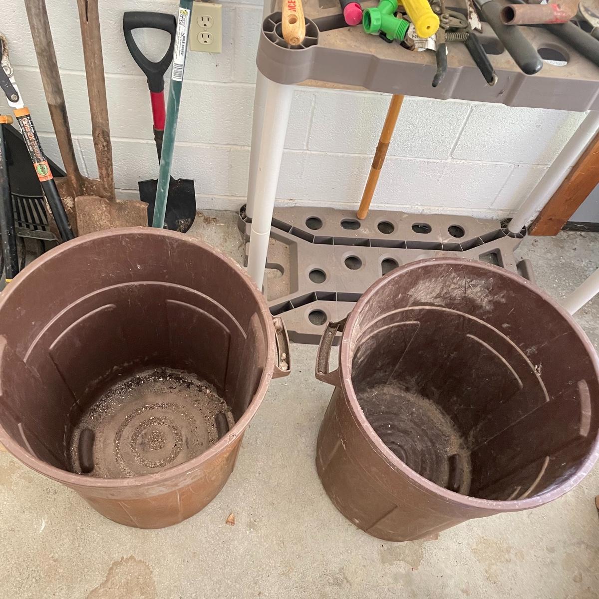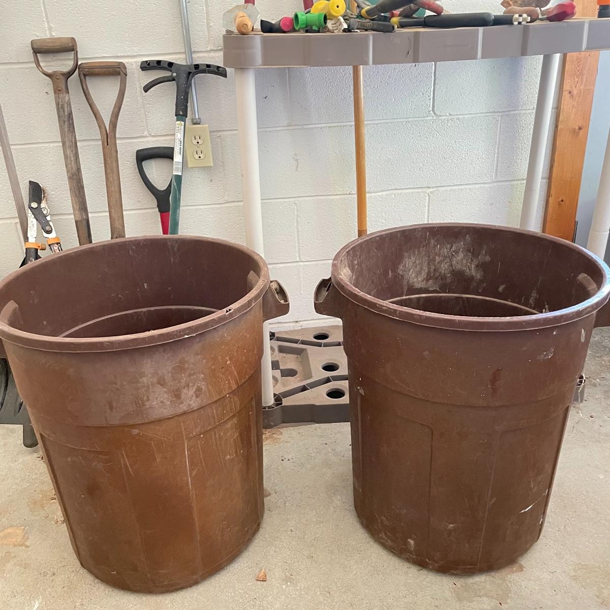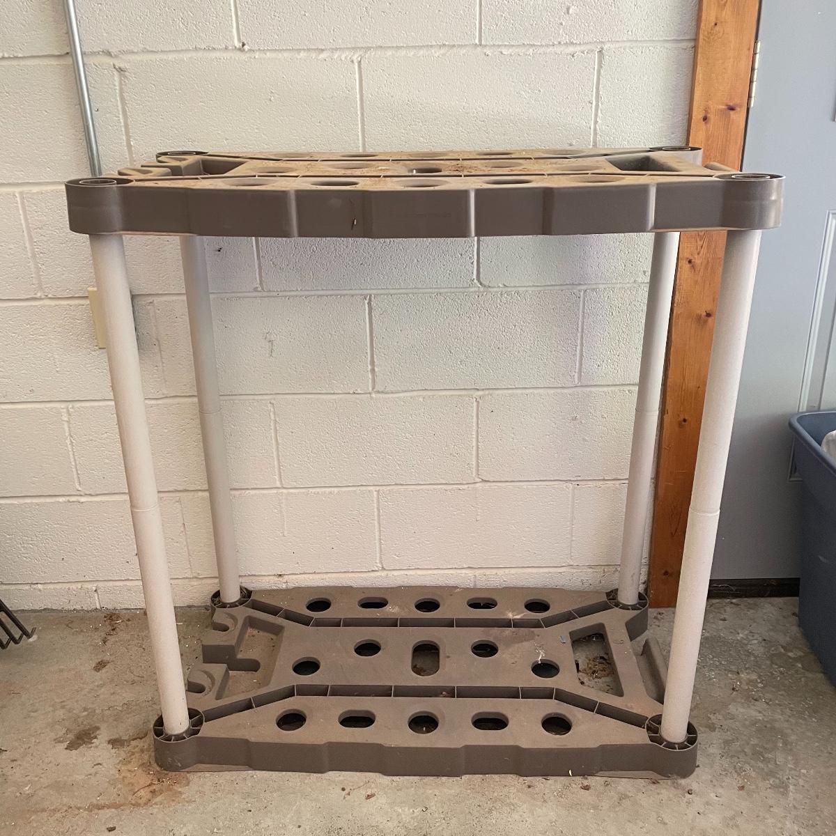 Get all your yard and garden tools here and keep them organized! The tool stand is pictured at 36” x 18” x 38”, but has nesting legs and can be shortened to about 21”. Two short rubbish bins are in nice shape, a little dirty, measuring 19”d x 22” each. The manual yard tools include clipper, snow shovels, bulb hound, saw and more! One knee pad is thrown in the mix, so you can be comfortable keeping your garden pretty! See images. Local pick up only.