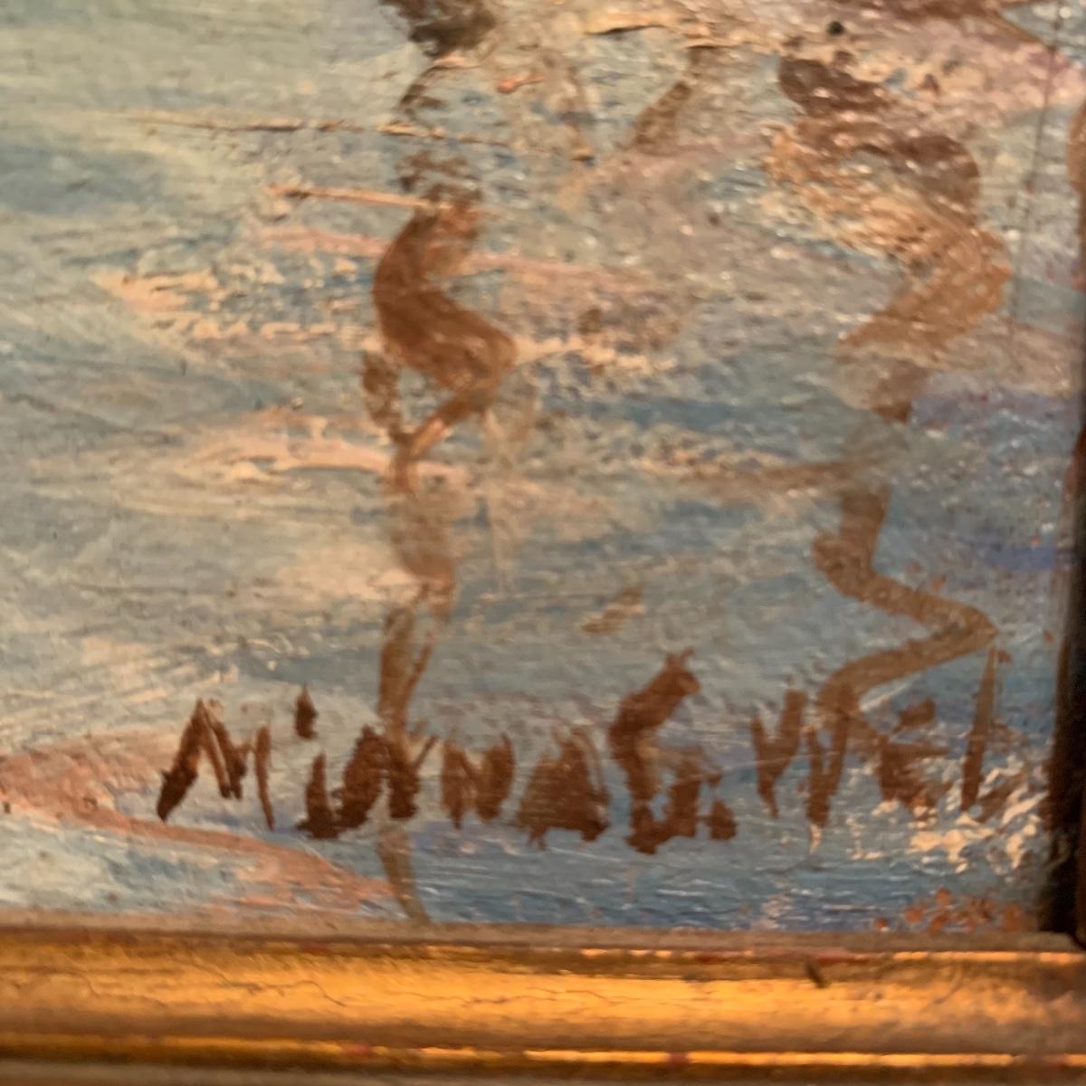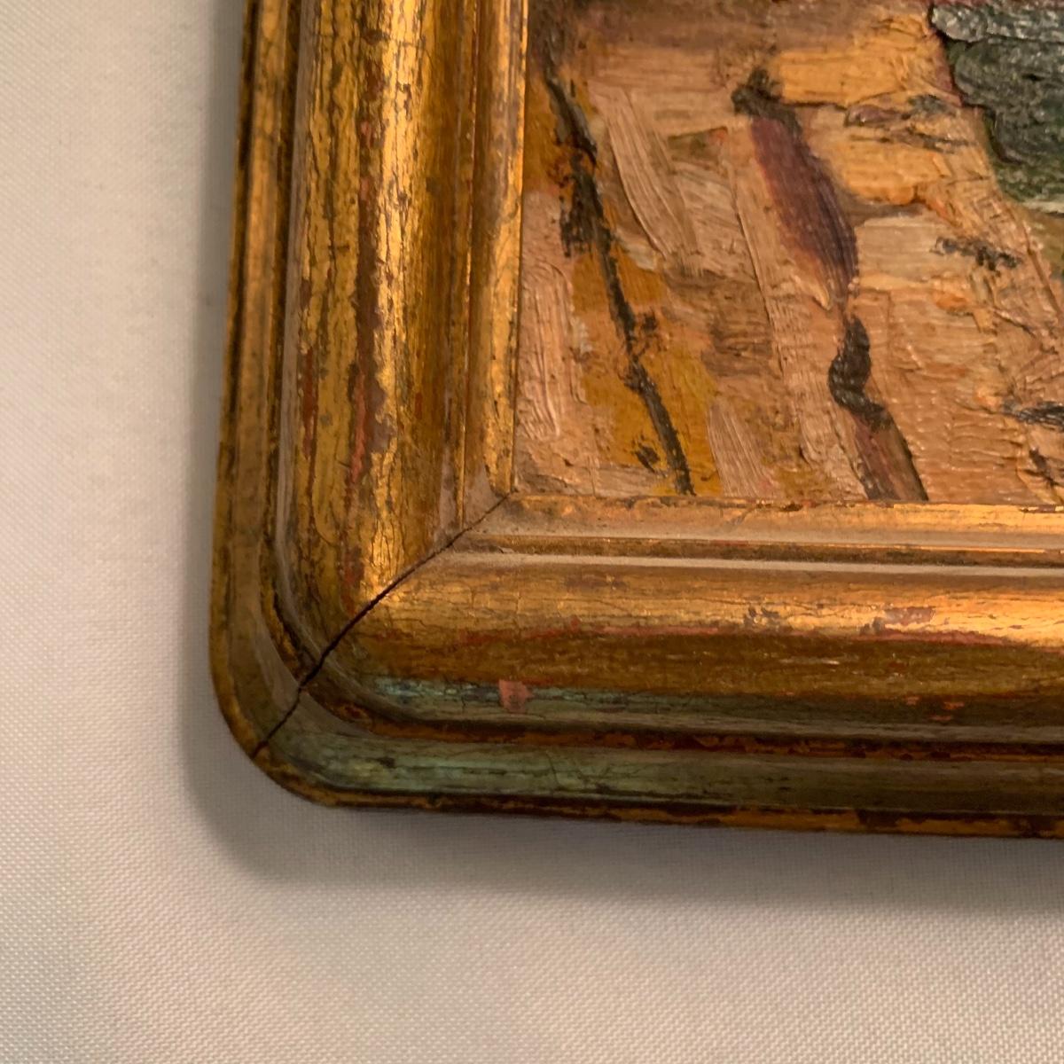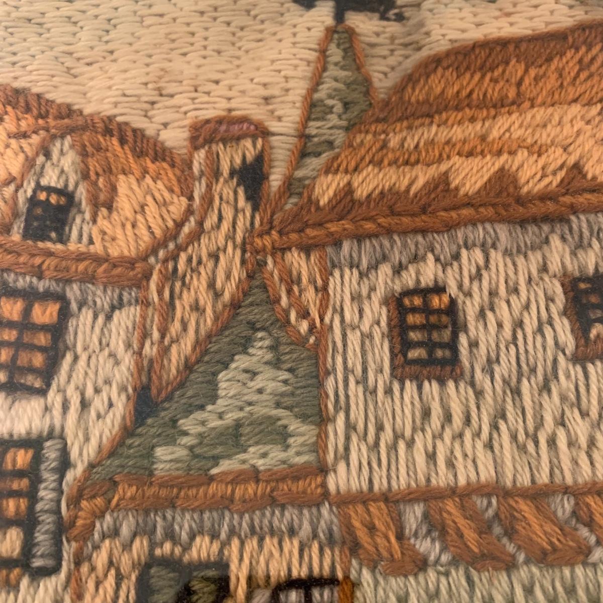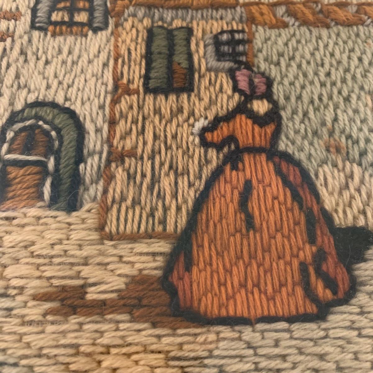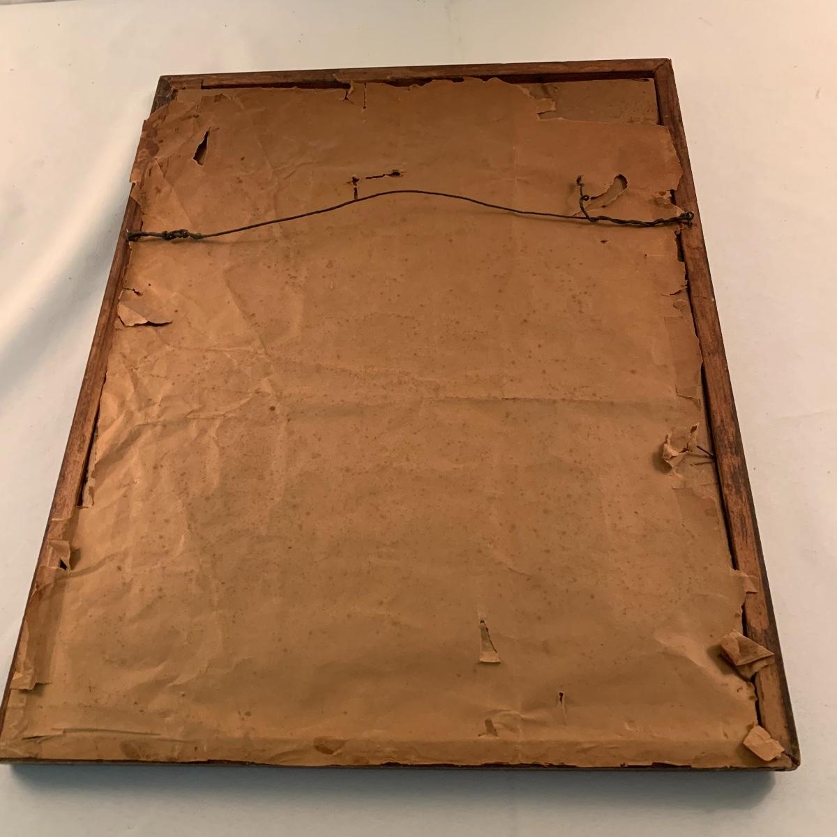 This lot includes one piece of yarn art and one painted harbor scene artwork. The yarn art is a delightful piece that is framed and matted. The frame does need some attention as it is quite loose at the joins (see photos). It measures 19in x 15in. The harbor painting is framed and appears to be signed. The paper on the back of the frame is ripped and falling off (see photos). It measures about 14in x 12in. Shipping available. Shipping art can be costly, call UPS at 828-252-6930 for a quote.