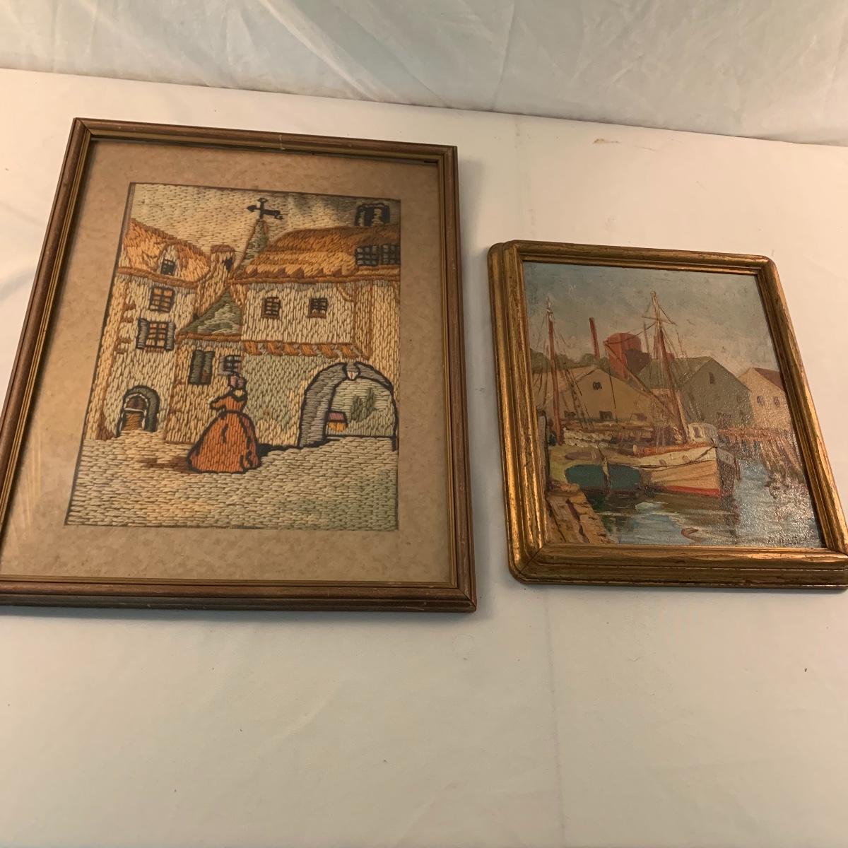 Lot 195 - Yarn Art and Harbor Painting
