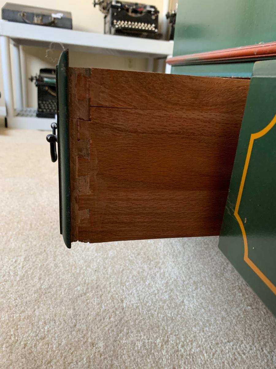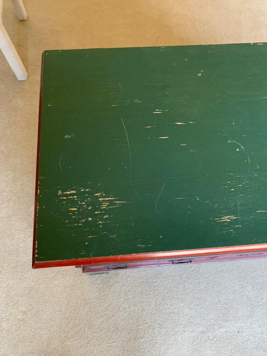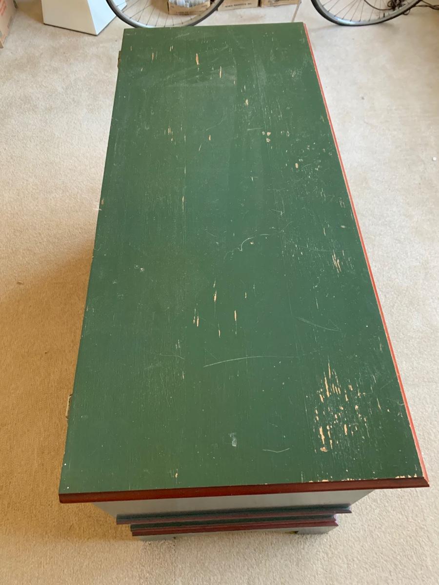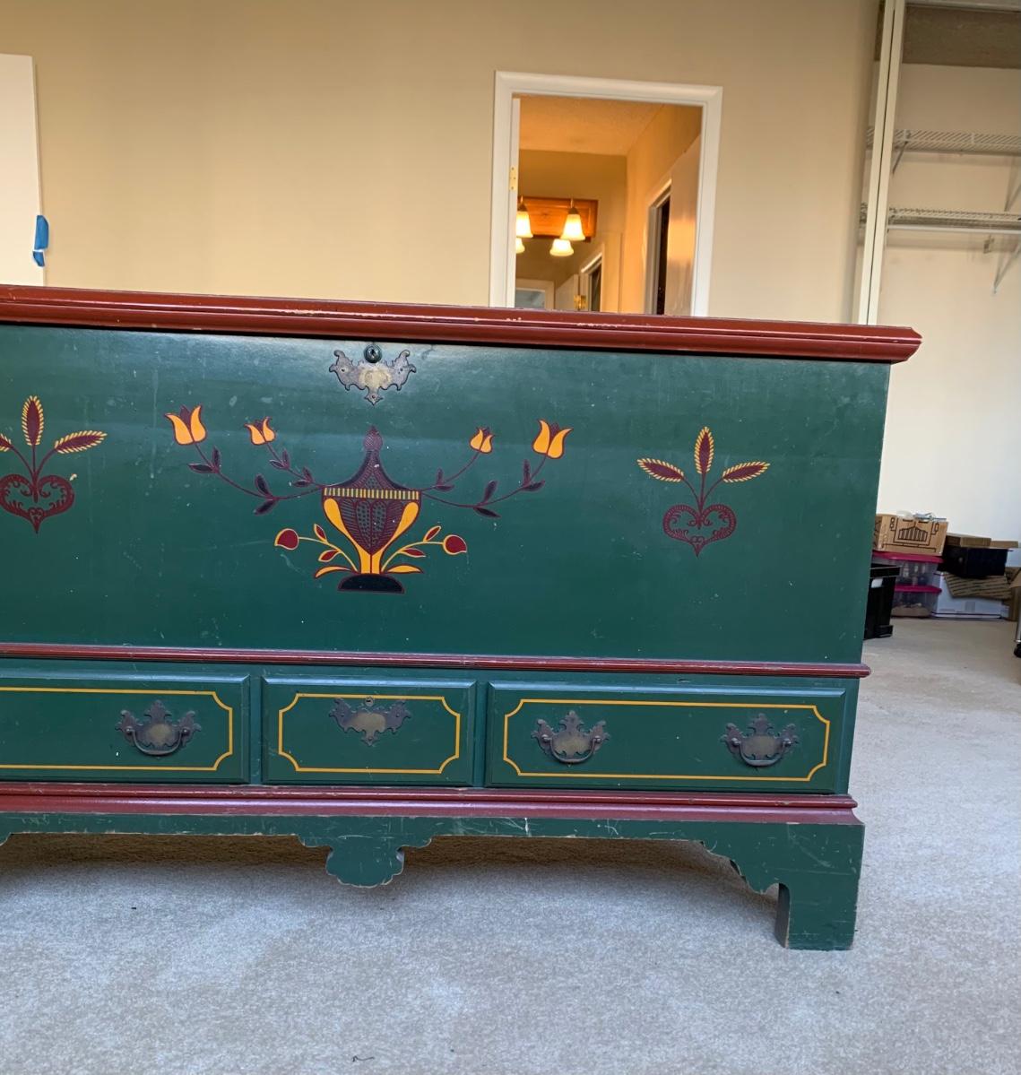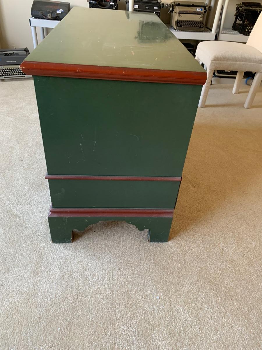 Beautiful country painted cedar chest with plenty of storage including 3 drawers, and inside compartment for small items.