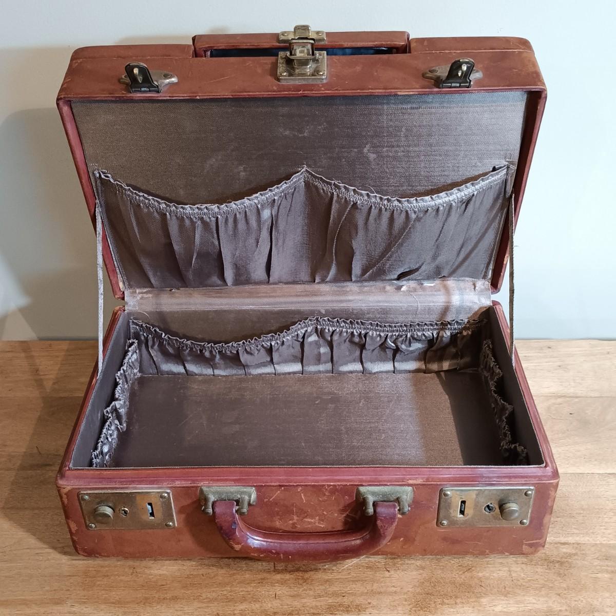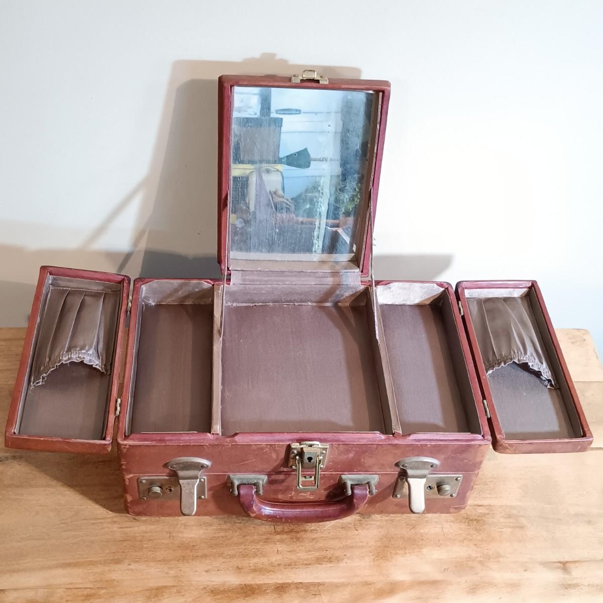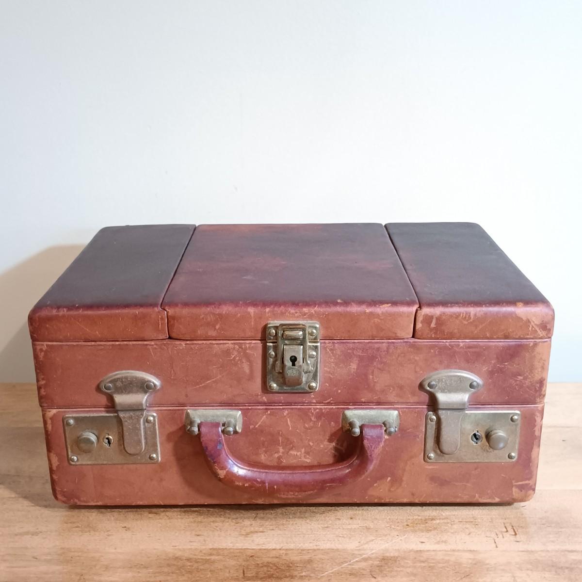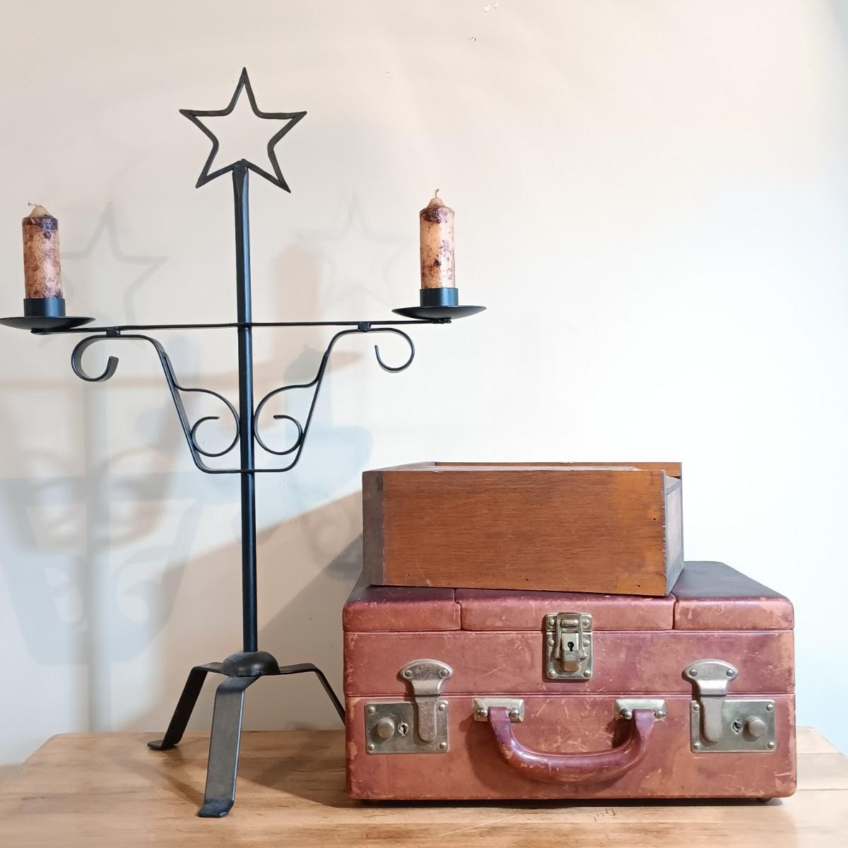 LOT 196: Wrought Iron Candle Holder w/ Vintage Suitcase Jewelry/Accessory Box & Wooden Spice Box