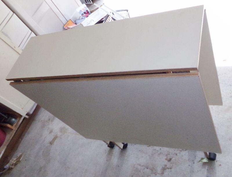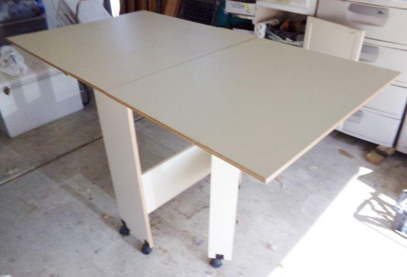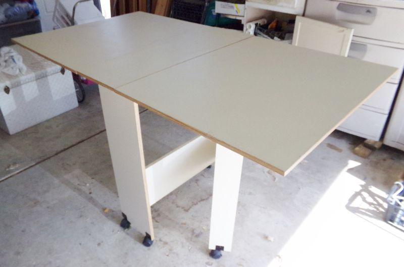 THIS TABLE FOLDS UP TO NEARLY NOTHING! THE TOP ISN'T TOTALLY FLUSH AT THE FOLDS WHEN TABLE IS OPEN