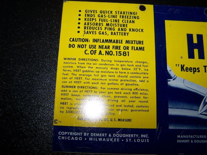VINTAGE METAL "HEET" SIGN VG CONDITION