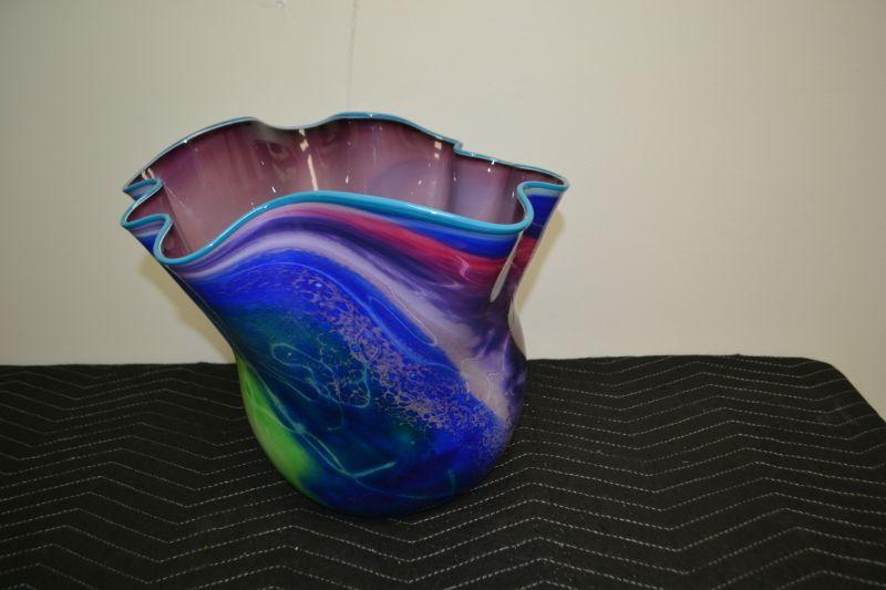 HANDKERCHIEF VASE. 15" WIDE X 13.5 " TALL