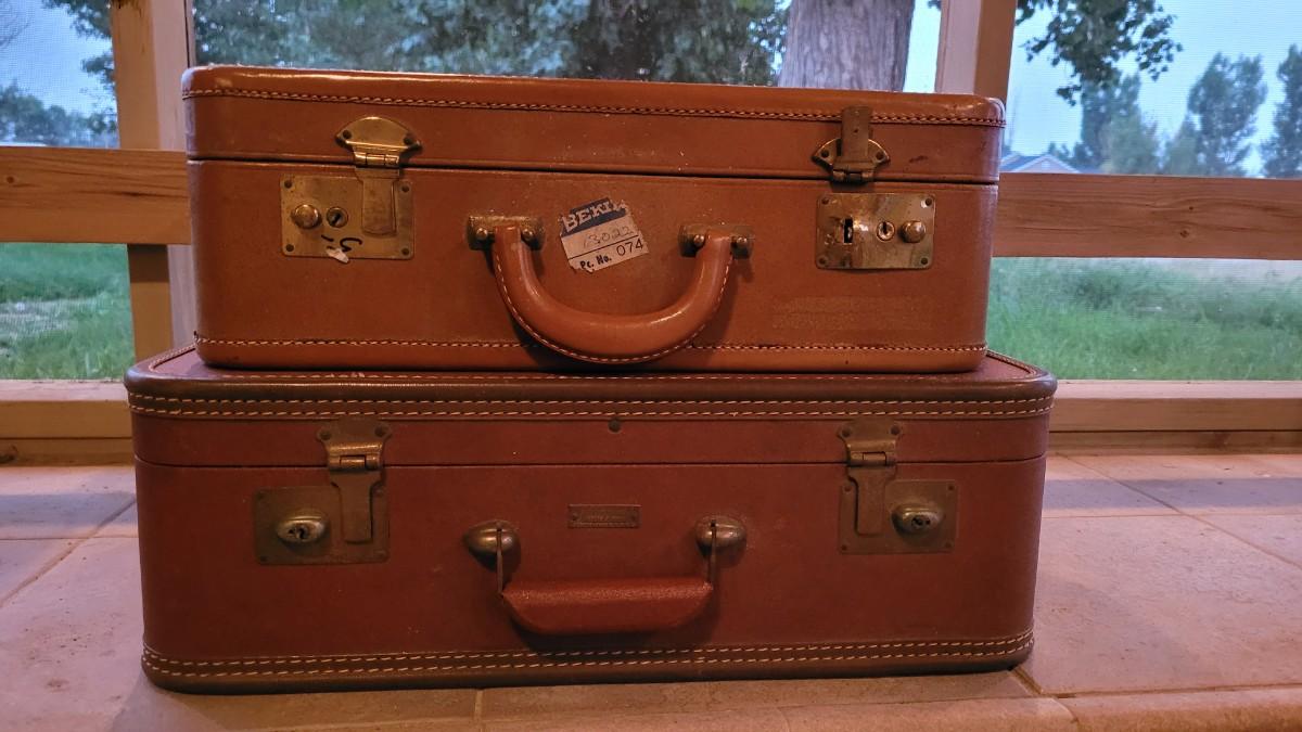 Lot 196: Vintage J.C. Higgins Luggage & Unmarked Smaller Luggage - Both have keys