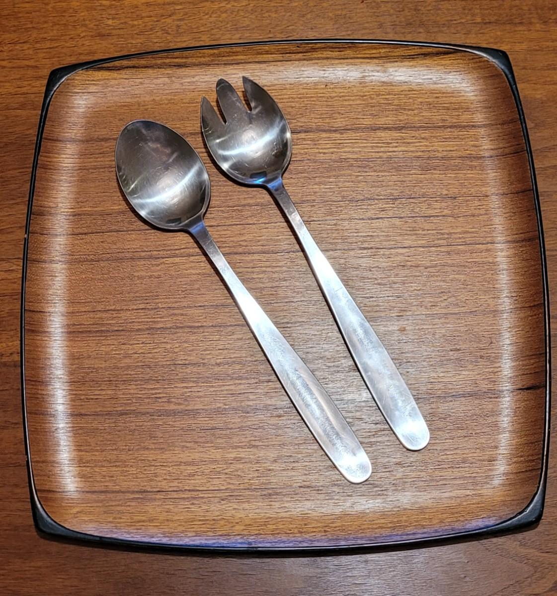 Lot 196: Mid Century Modern Teak Platter and Gense Stainless Serving Ware made in Sweden