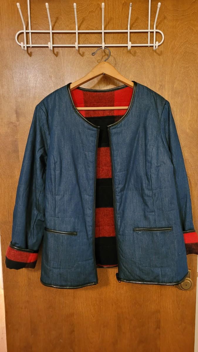 Lot 196: Denim and Plaid Reversible Quilted Jacket