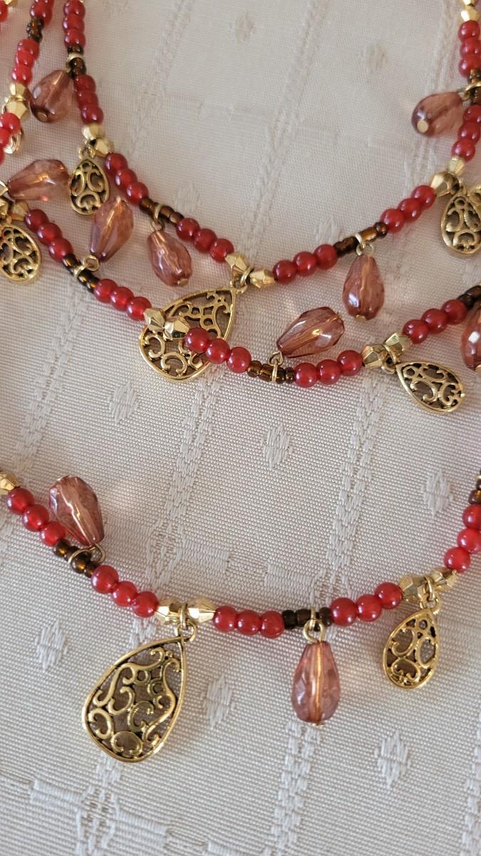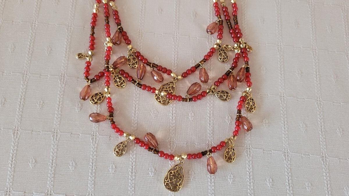 This is a plastic lightweight beaded necklace.