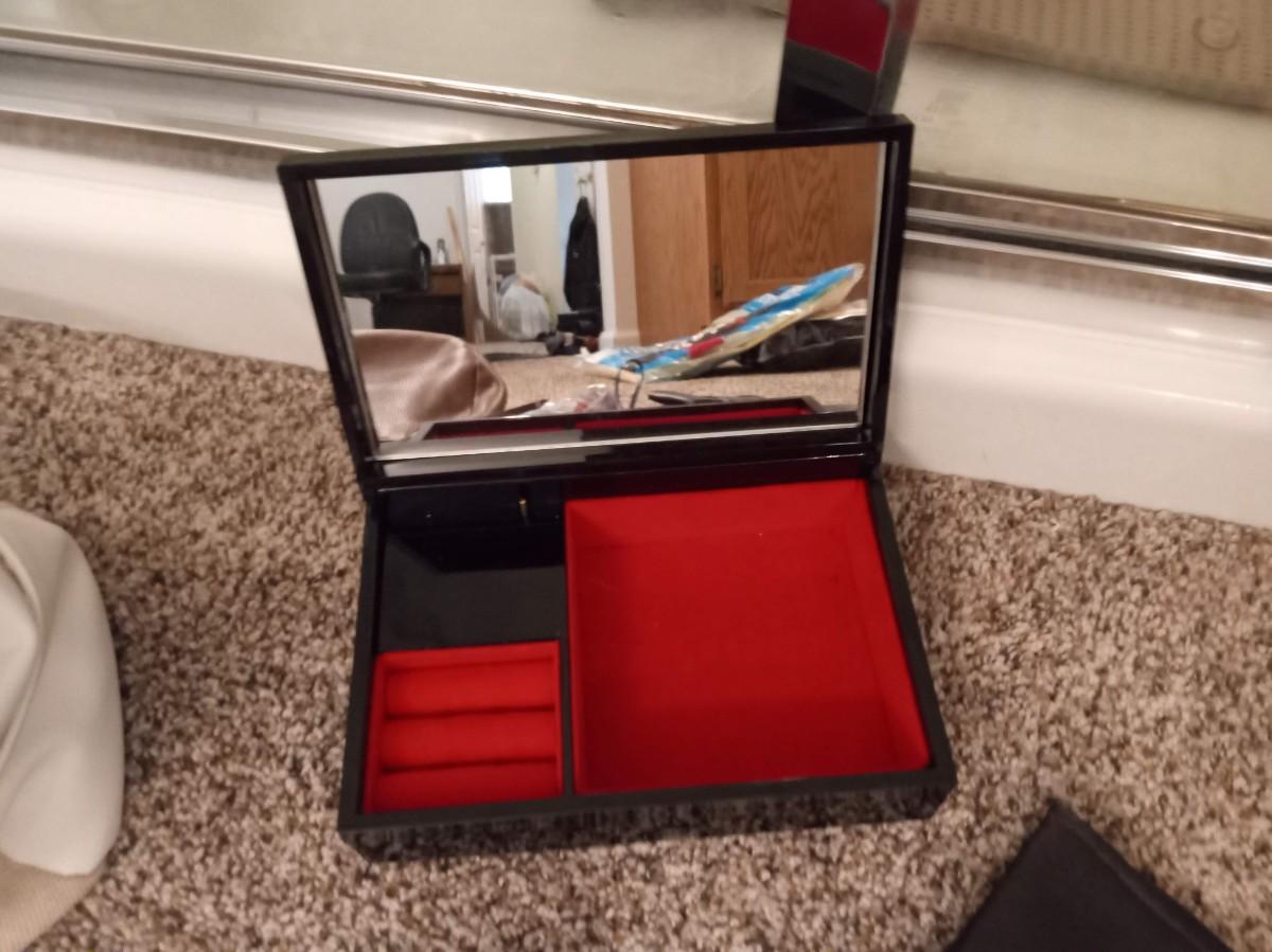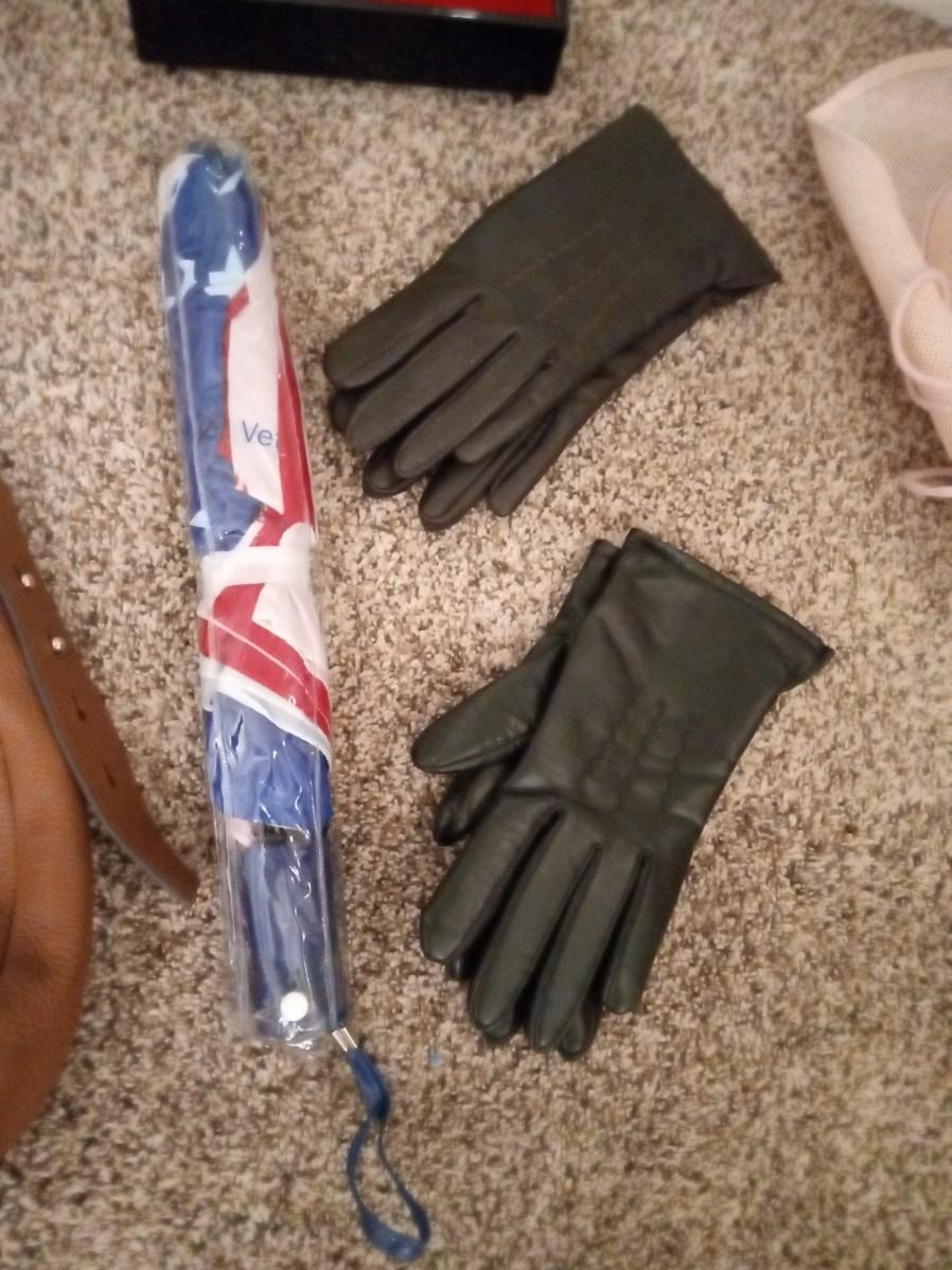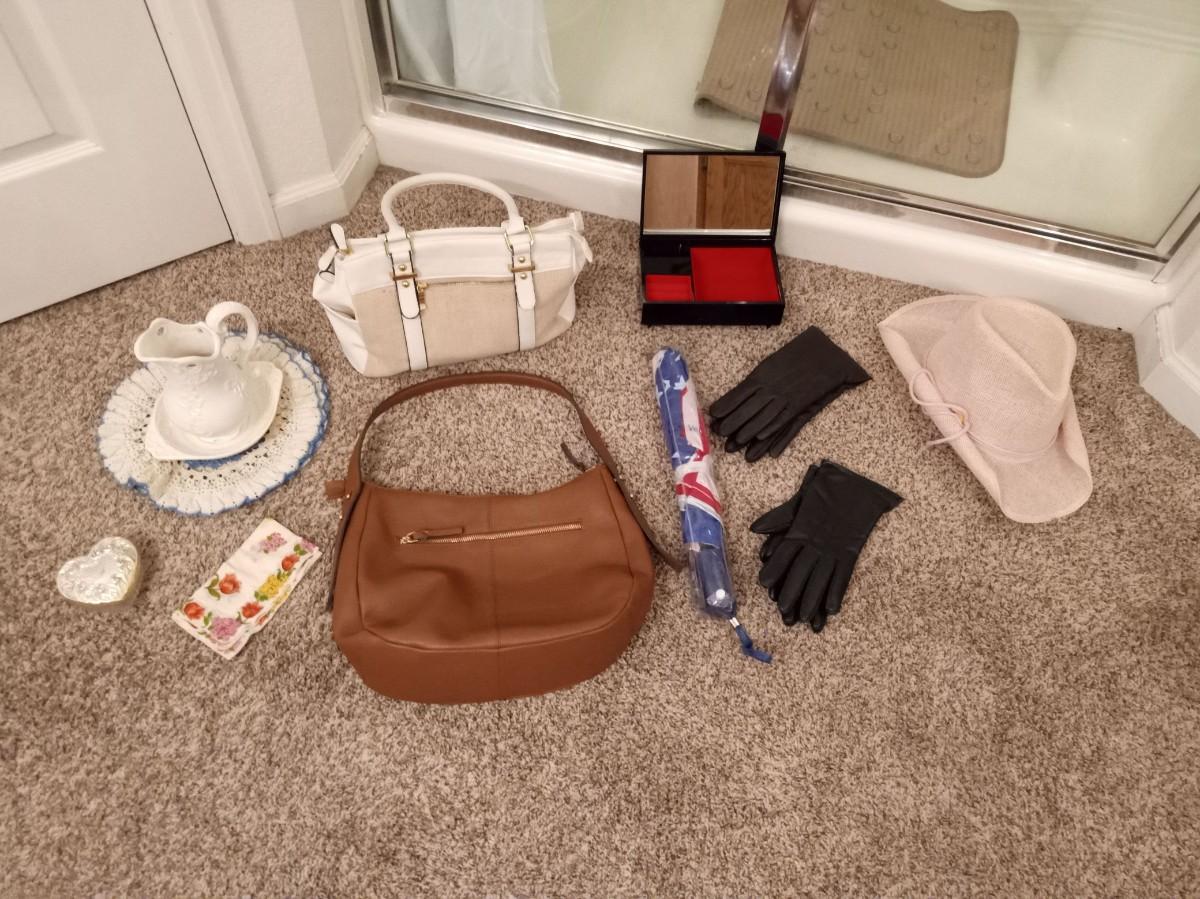LOT 196 PURSES, GLOVES, MUSICAL JEWELRY BOX, UMBRELLA AND MORE (Master bdr)