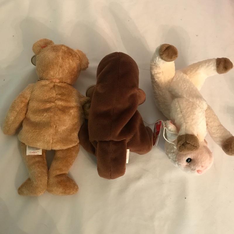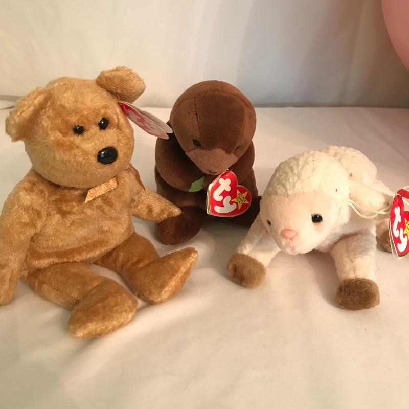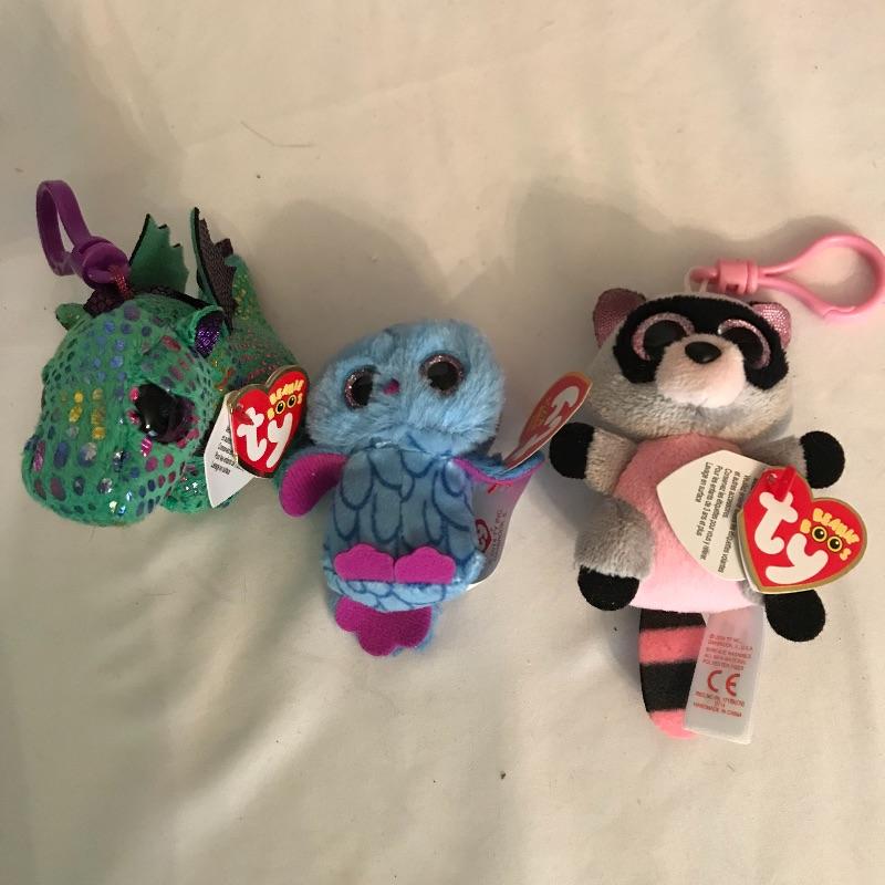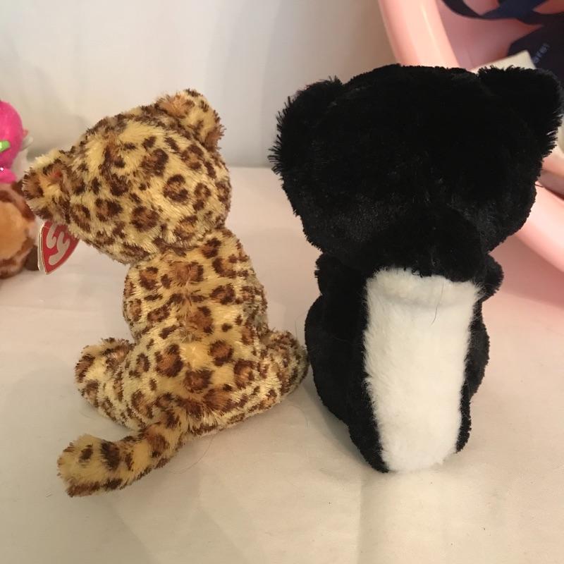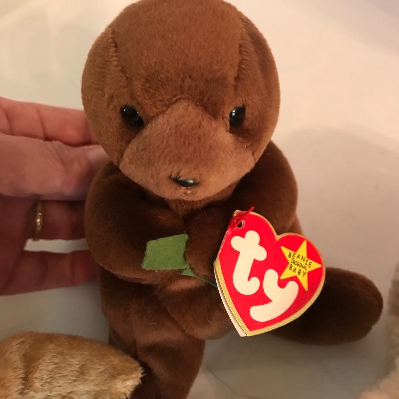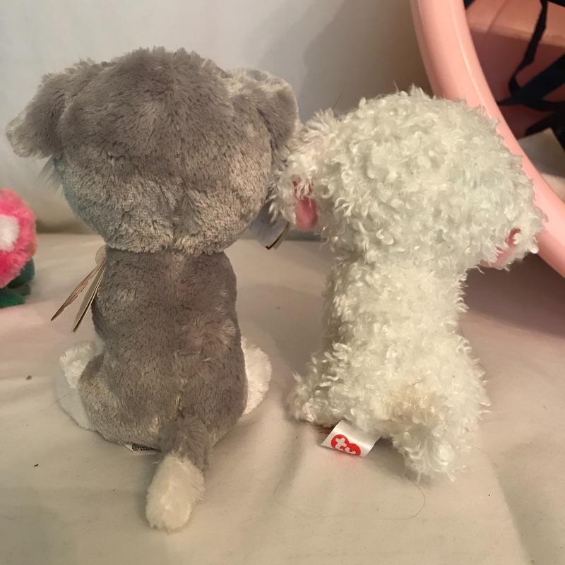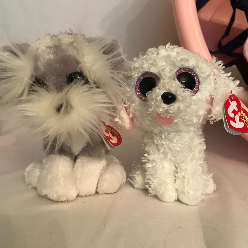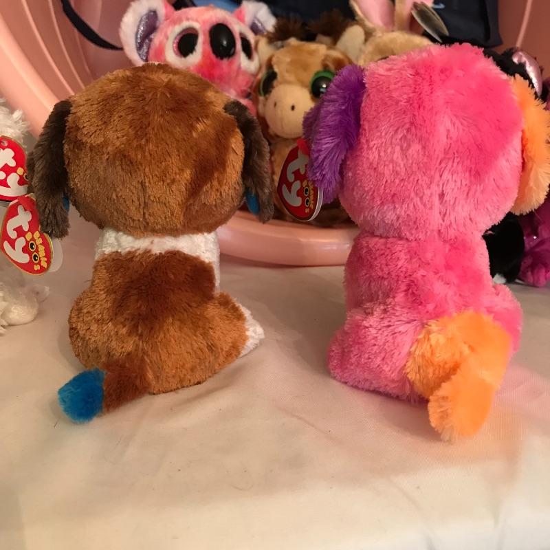 Fun collection of new and older TY Beanies. Most have original tags attached, the giraffe is missing its tag. There’s an otter, ewe, and teddy bear that all appear to be older while the newer sparkly eyes adorn the rest of the collection. All appear in very nice shape. A Disney store reusable bag with a BFG bag and a large pink storage tub also included. Tub measures 21.5”d x 16.5. No shipping.