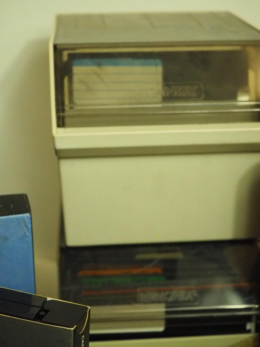 Lot 196 Can Box VHS, Vintage metal file boxes, data and Rolodex boxes