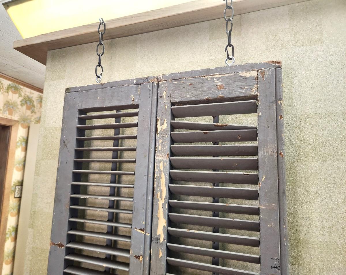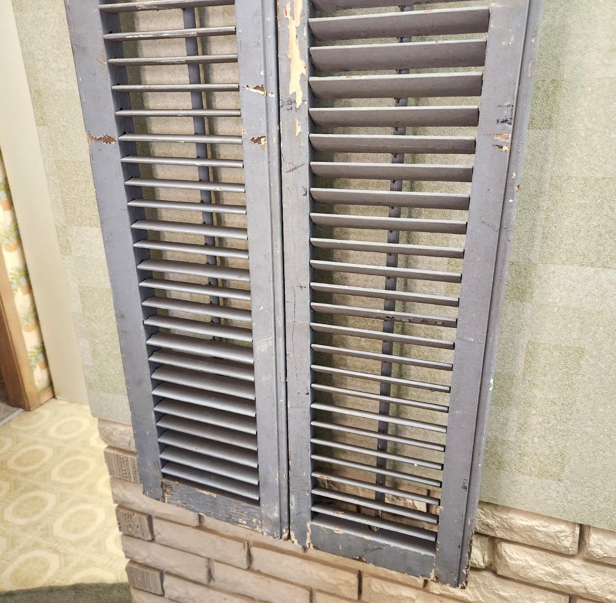These old shutters make great architectural accents indoor and out. This one is 20.5" across, 30" tall.