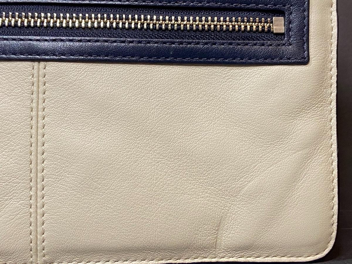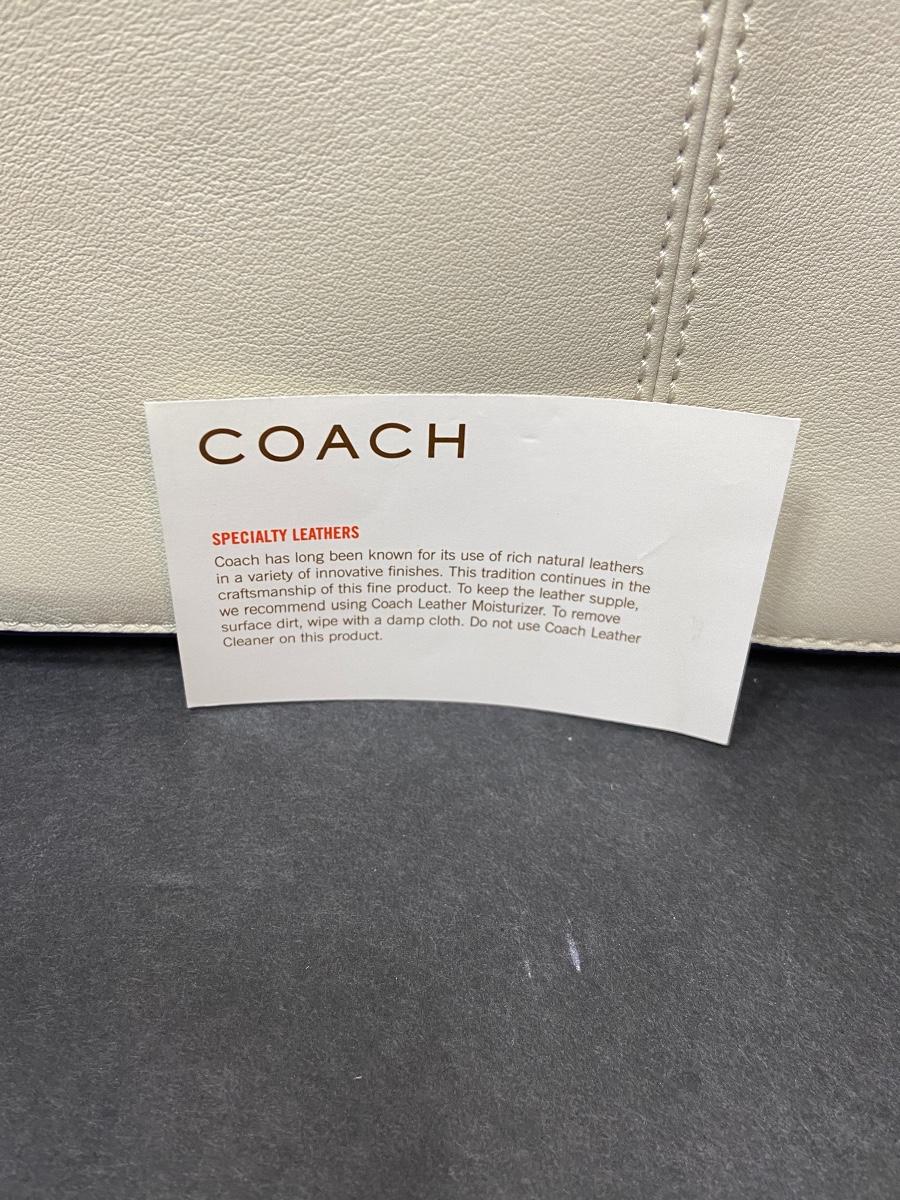 This looks to be almost new, not sure if ever carried. It does have Coach card inside. Cream and Navy Blue Coach Wristlet. We can't authenticate any of the handbags. We can only list according to the brand and the age shown. Please use your judgement and see all pictures as they are the best representation of the items. The pictures show condition, measurements if taken, and what is included in the lot. Due to the large amount that we photograph and the time frame, we are not always able to take measurements. All items unless noted, are pre-owned and have been used. If you purchased furniture, you must bring help. We do not allow one person to carry large furniture out on their own. Bring help, tools and a truck for the safety of our client’s homes, and your personal safety. Company policy. Thank you