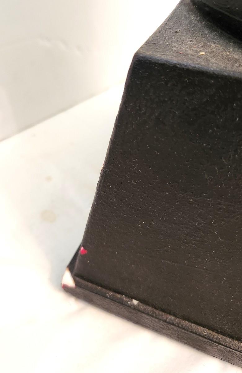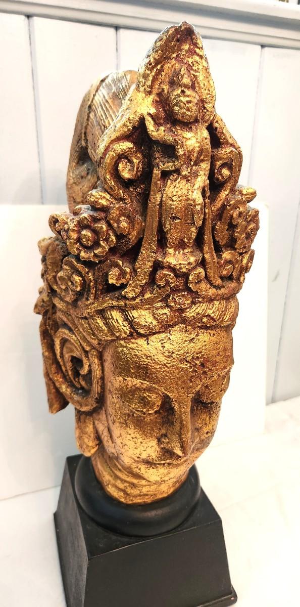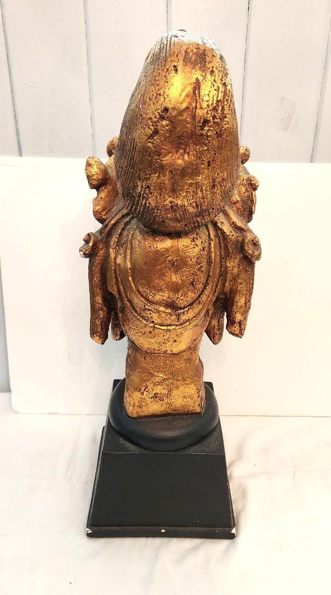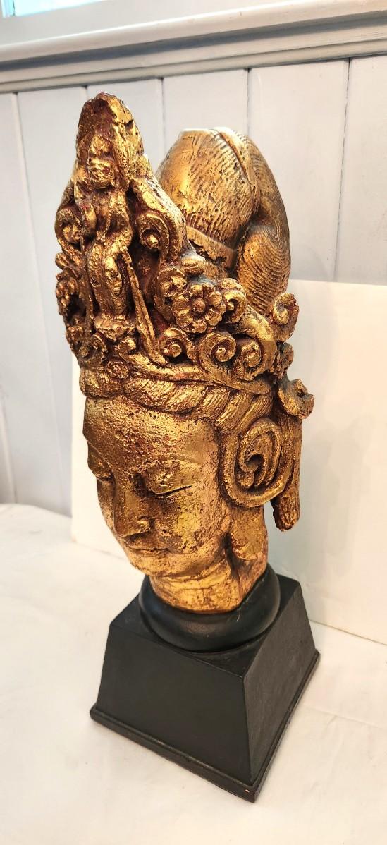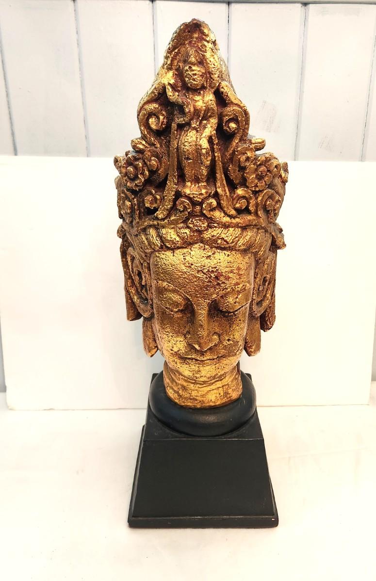 Contemporary, but with a great look. Temple head on black resin base - HEAVY. 27" tall. Some chipping at rear base (see photo). Fix it with a Sharpie and you're good to go. Base is 9" across.