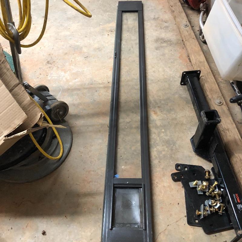 Make your fur babies happy with these accessories! This lot include pet sliding glass door insert, hiking dog vest, car dog gate and a car pull down screen. Local pick up only.
