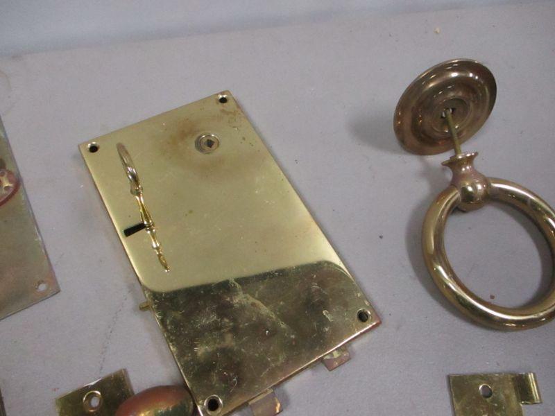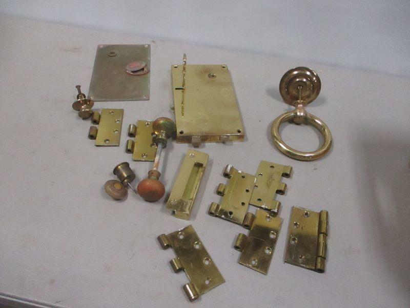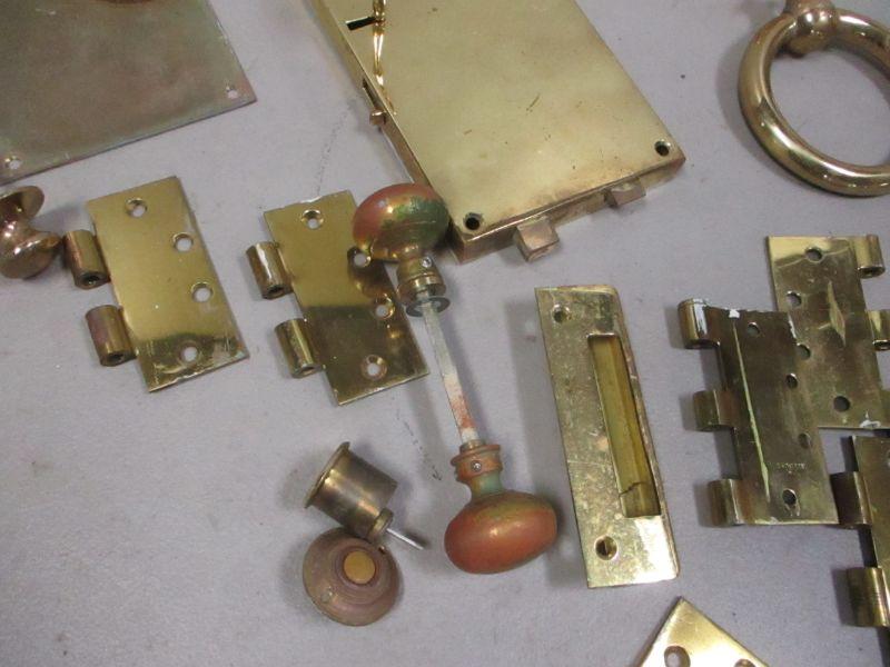 Lot 196 - Brass Door Hinges - Lock - Knocker