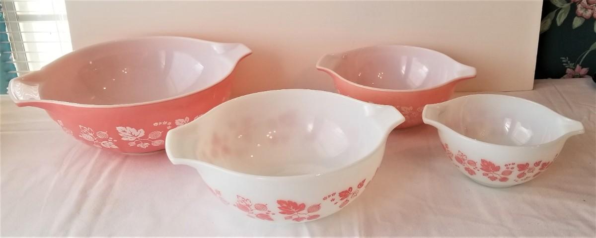 Lot #196  Hard to find PINK Pyrex 4 piece Mixing Bowl Set