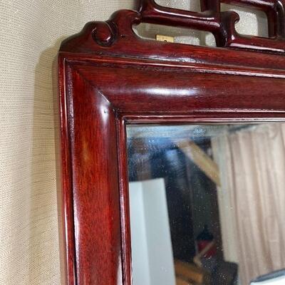 Lot# 92 Large Heavy Solid Wood Oriental Mirror Fretwork 48” x 30”