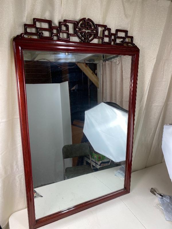 Lot# 196 Large Solid Wood Oriental Mirror 48” x 30”