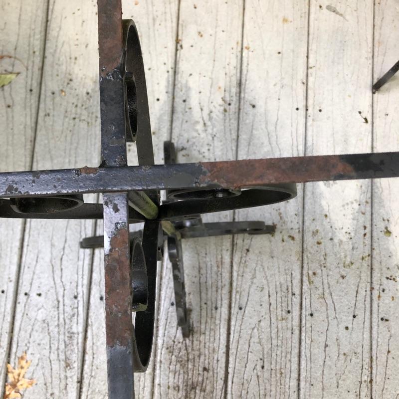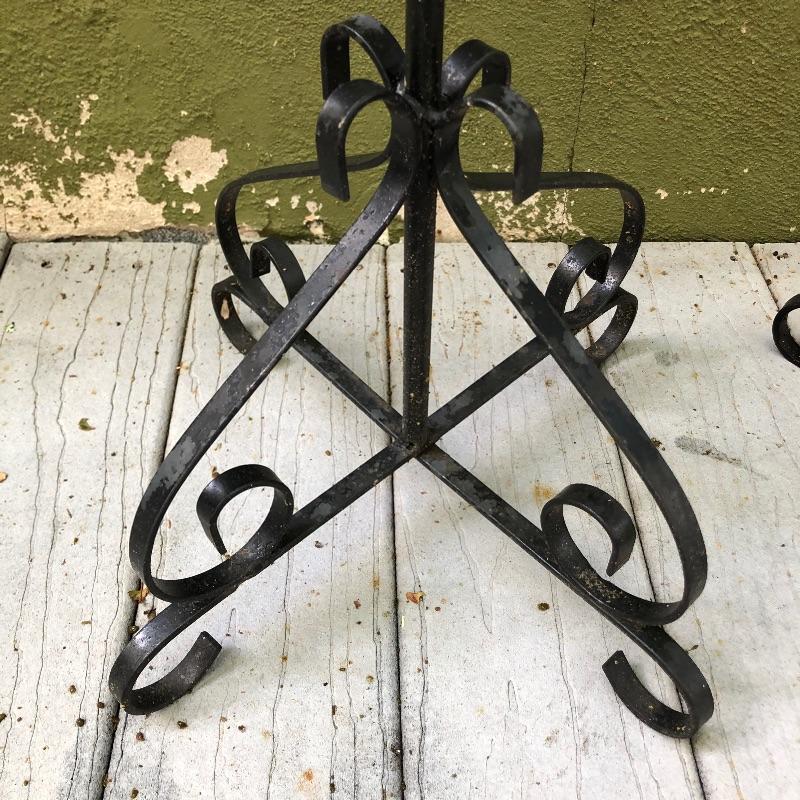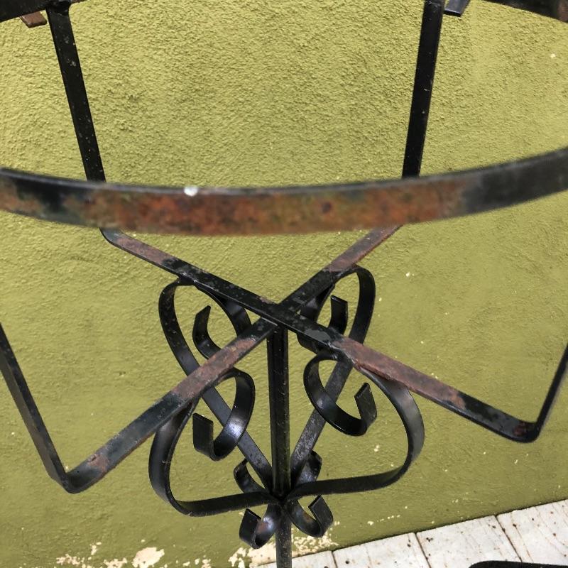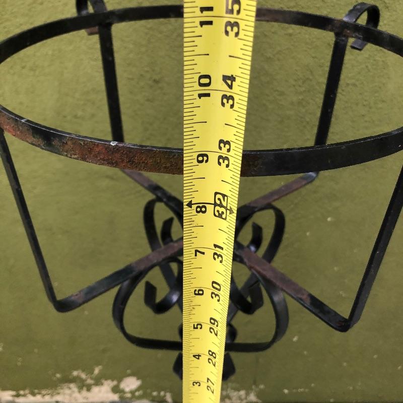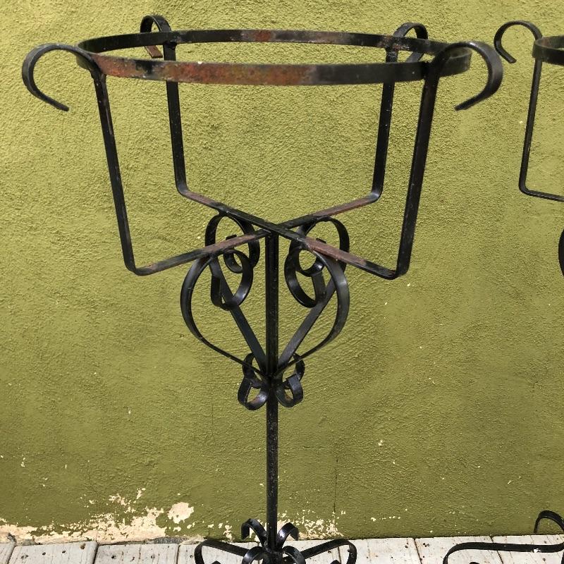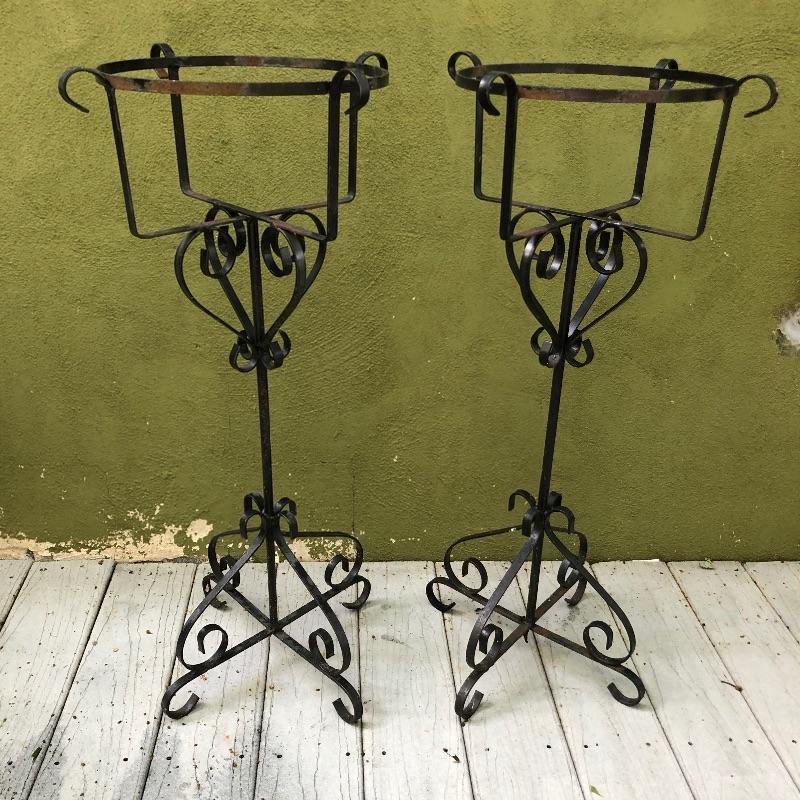 This matching pair of black plant stands are ornate and attractive. With matching pots they would look amazing flanking your front door or on the back patio! They could do with a new coat of paint unless you like the shabby chic look, as there are some rust spots, see the last images. Also see images for measurements.