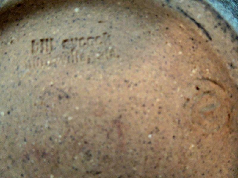 Bio on Missippi potter Bill Suggs: "From the early 1900s through 1956, W.D. Suggs Pottery produced whatever customers needed, from churns to flue thimbles to ash trays“”all made by hand. William David (“Mr. Bill”) Suggs was an exacting craftsman whose wares looked good, functioned well and endured for generations. He learned the trade from his father, Joel Green Suggs, an Itawamba County farmer who operated a small pottery mainly to supply his own needs.