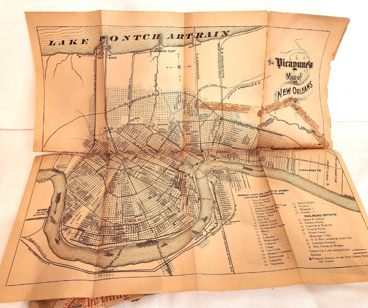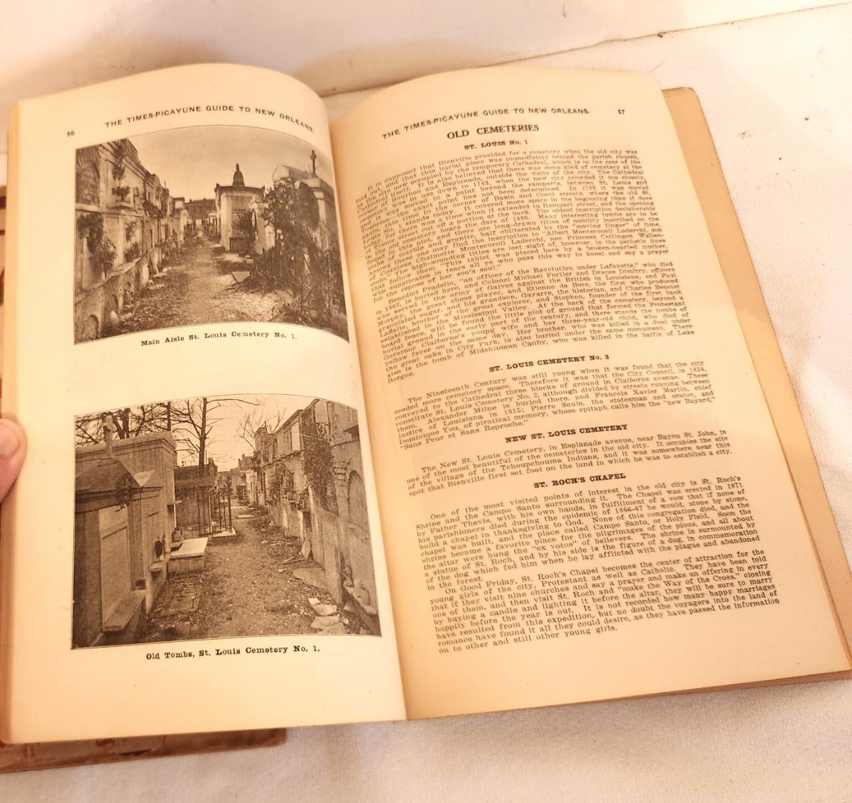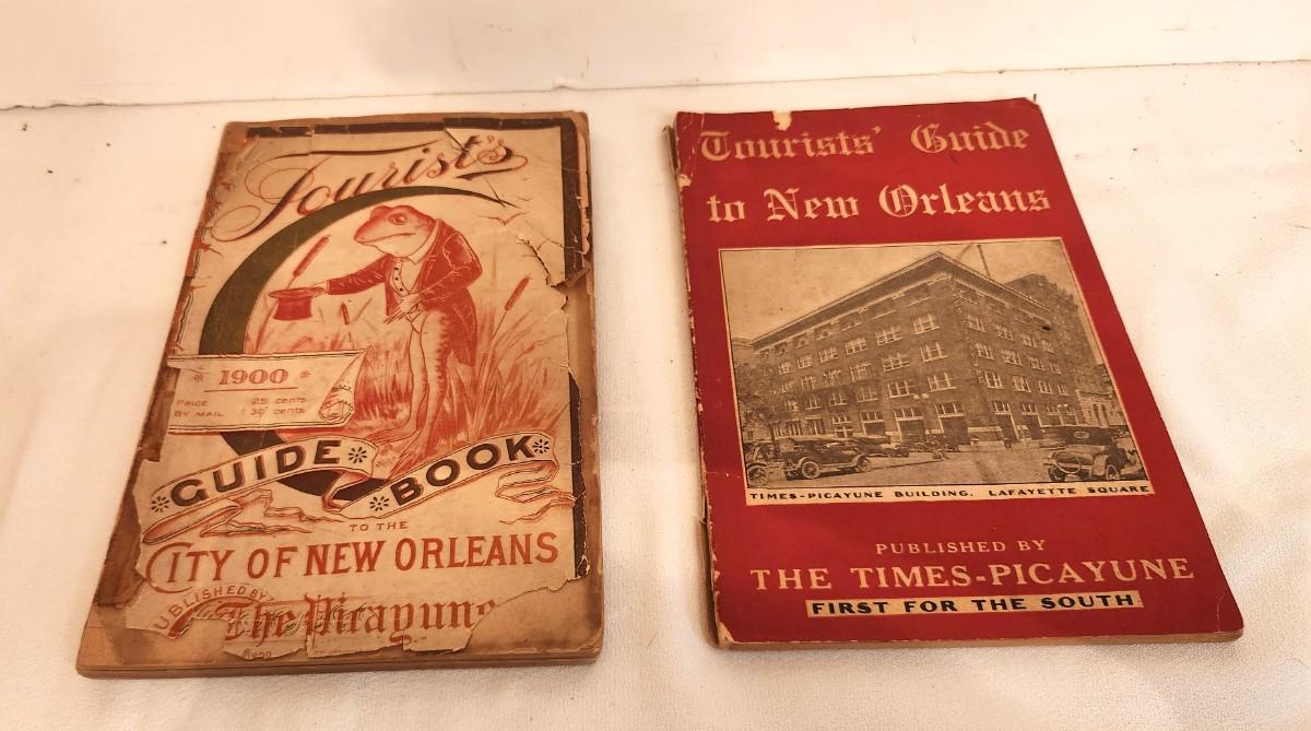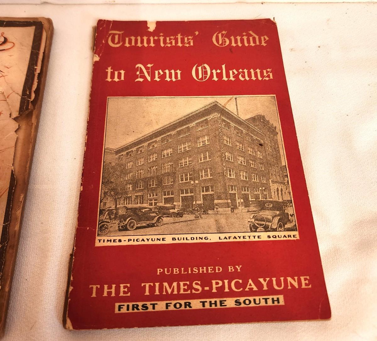 Times Picayune "Tourist's Guide to New Orleans " - 1900 edition and 1924 edition. Vintage condition - 1 has great fold out map - back cover missing off the older issue. Lots of great illustrations of "lost" New Orleans. Vintage condition - some pages "chippy."