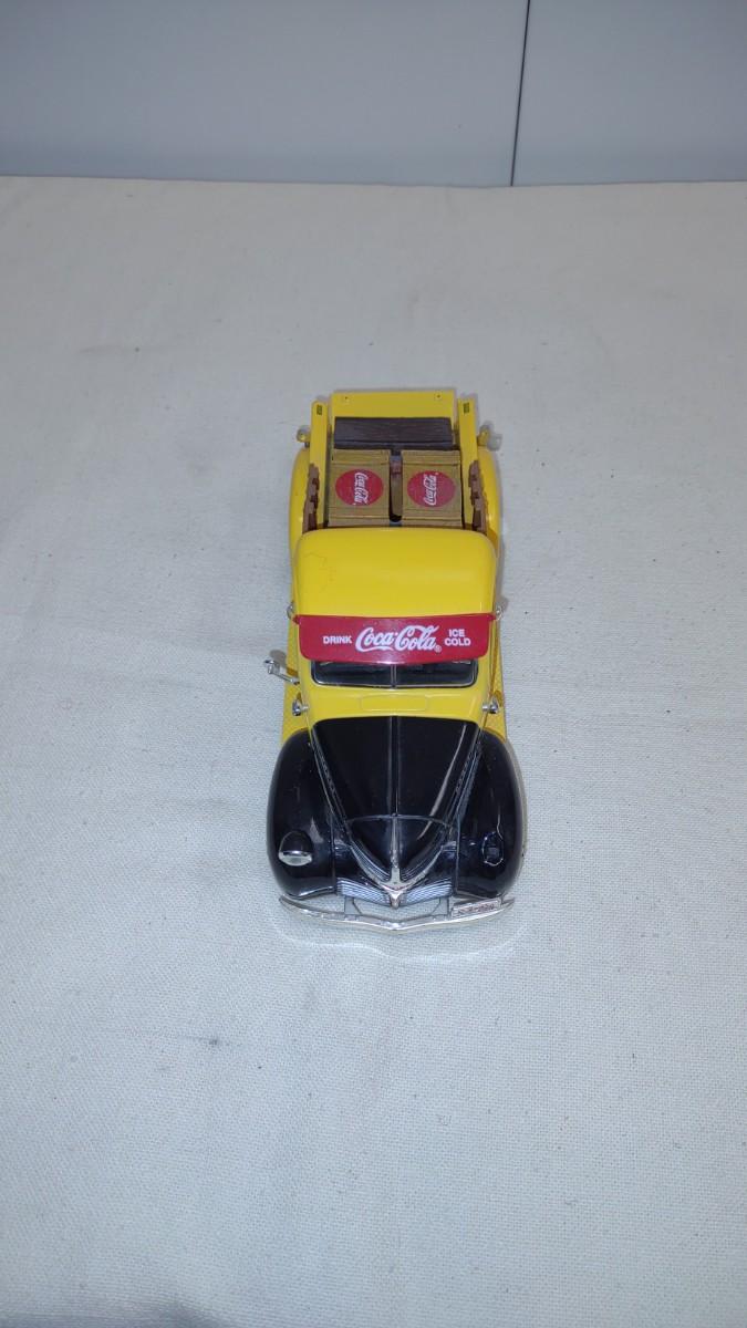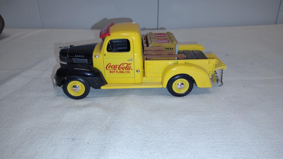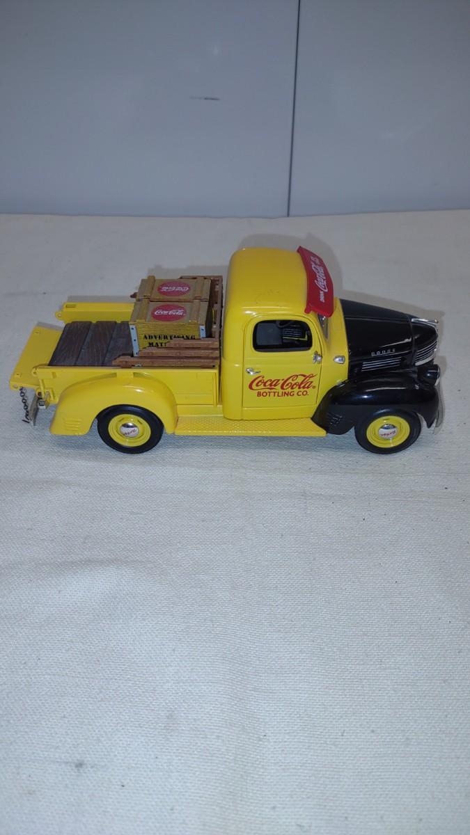 8” COCA-COLA DIE-CAST TRUCK, 2000. YELLOW BODY WITH BLACK HOOD AND SODA CRATES IN THE BED OF THE TRUCK. AMAZING CONDITION, NO BOX