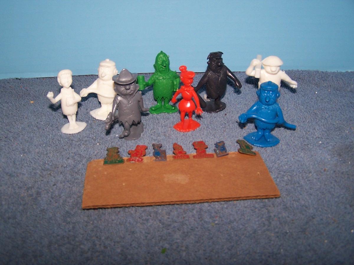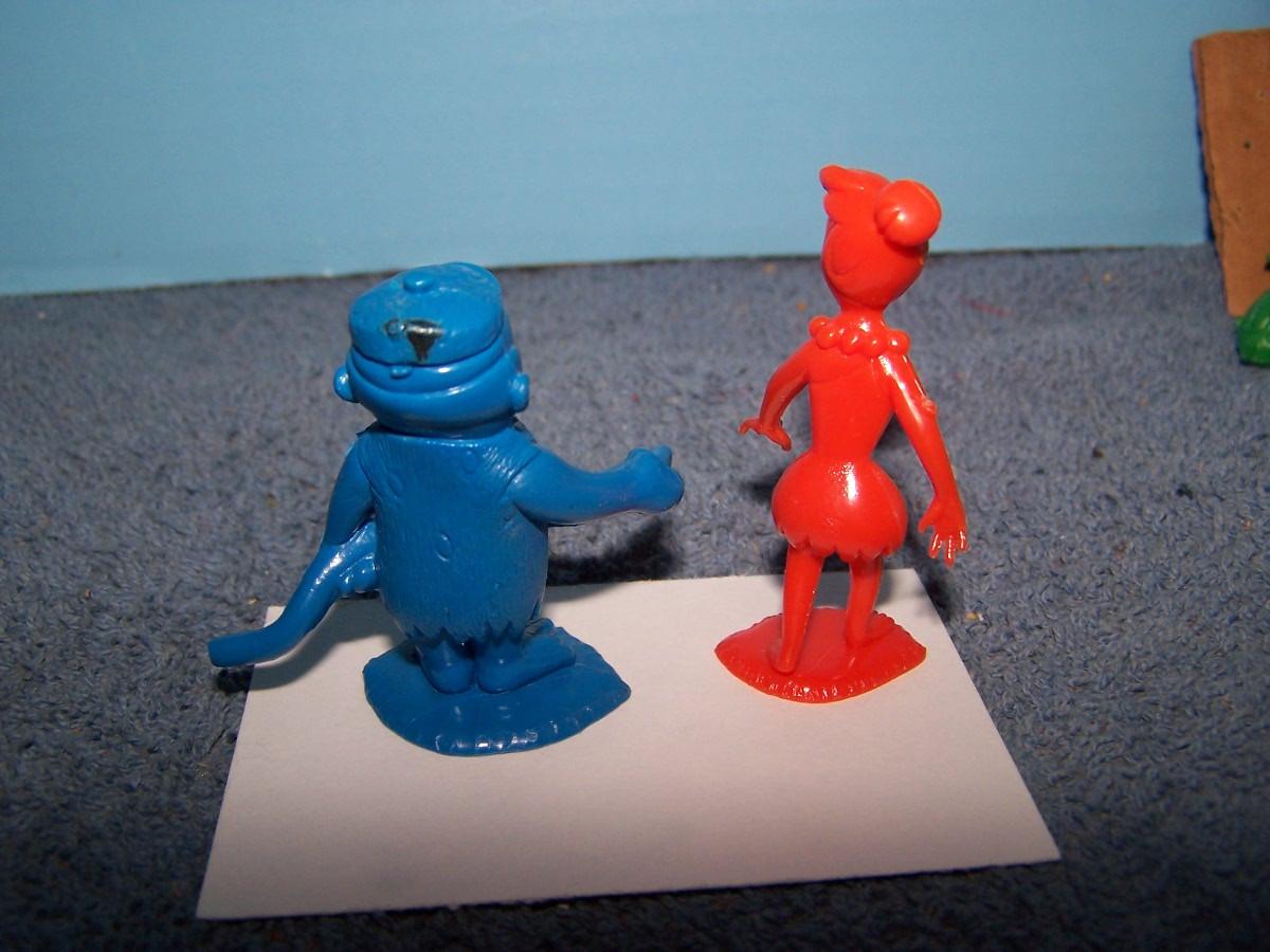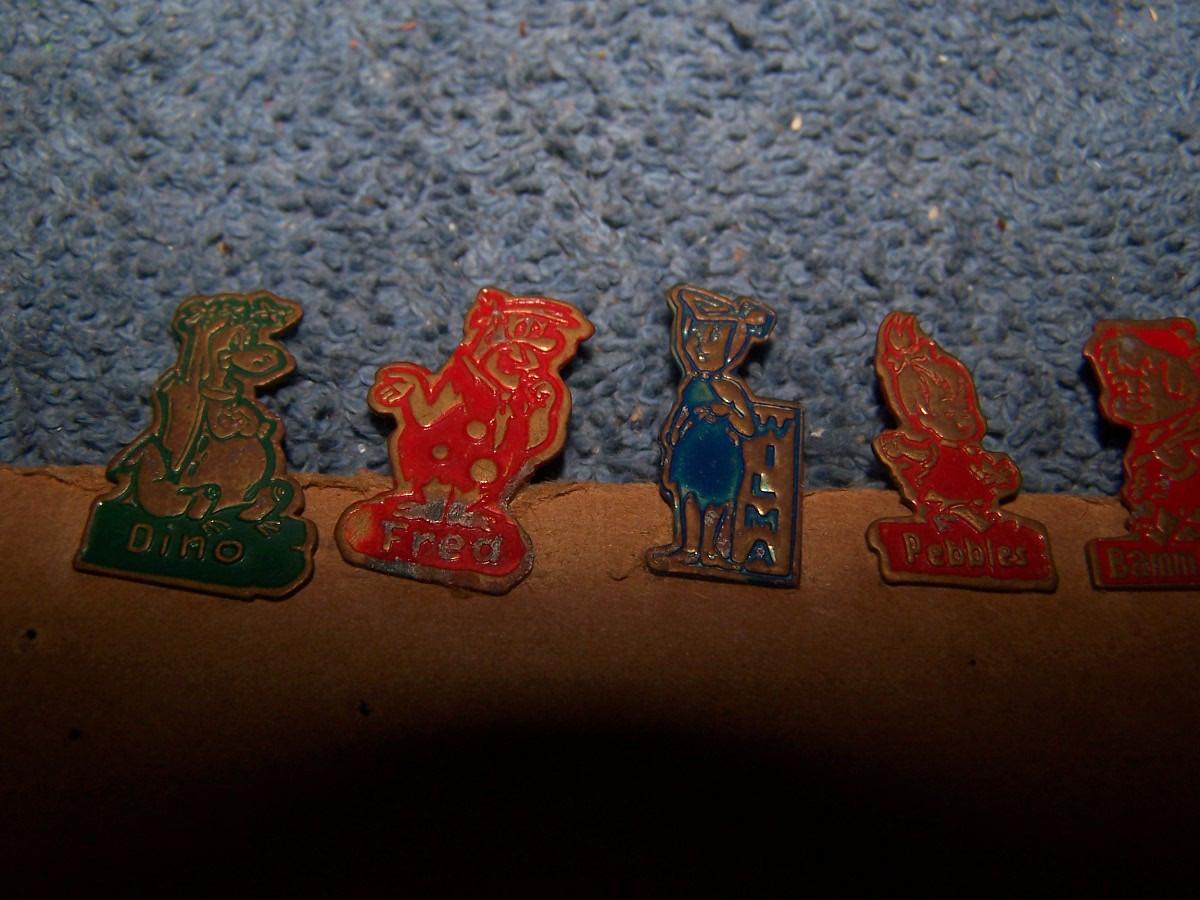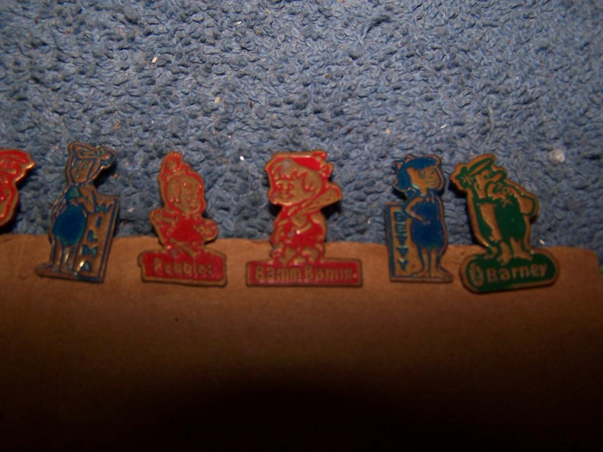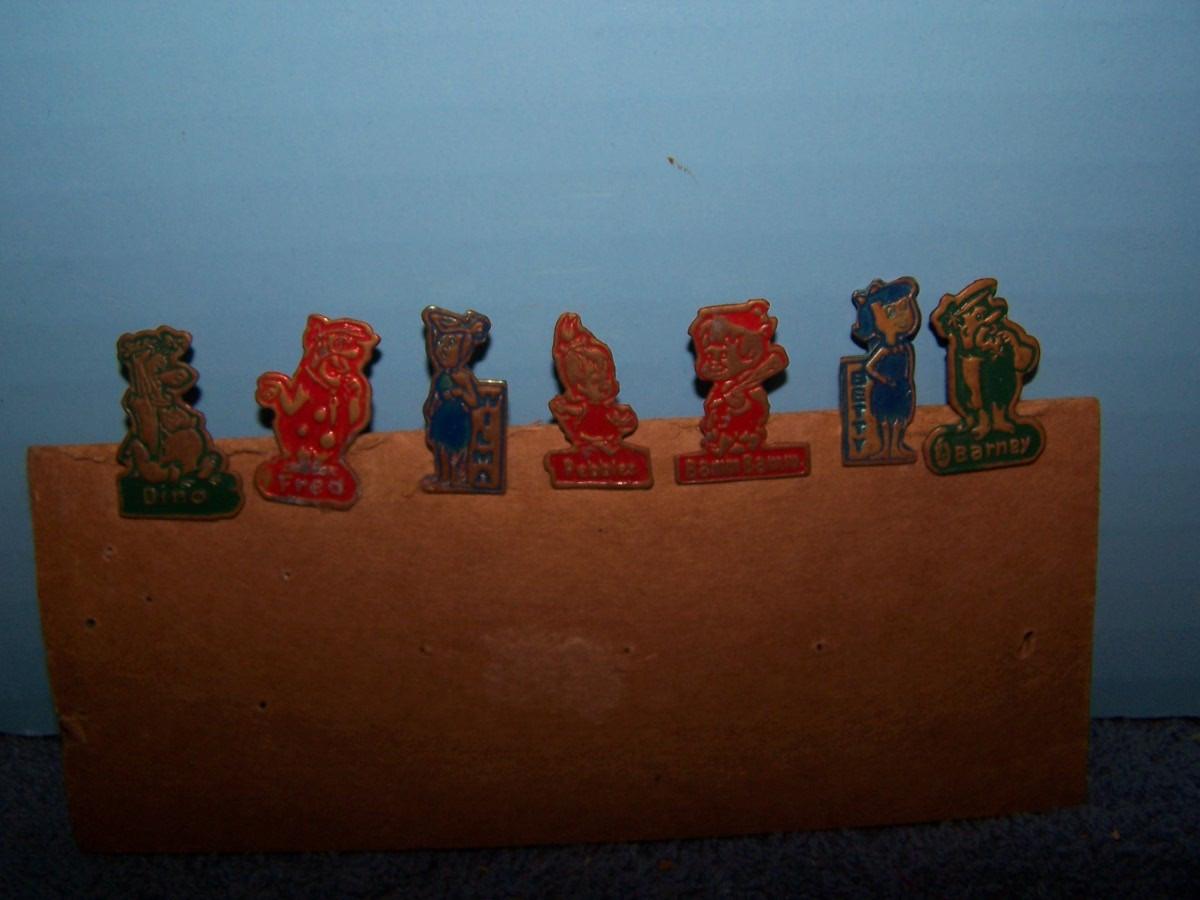 THESE ARE WONDERFUL VINTAGE FLINTSTONES METAL STICKPINS & MARX PLAY SET PLASTIC FIGURES!!! ALL TOYS HAVE BEEN PLAYED WITH..