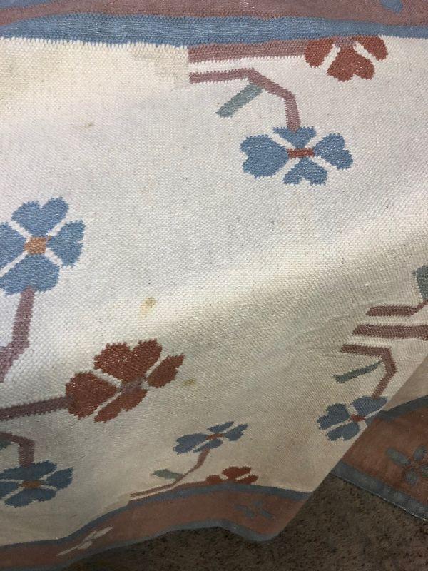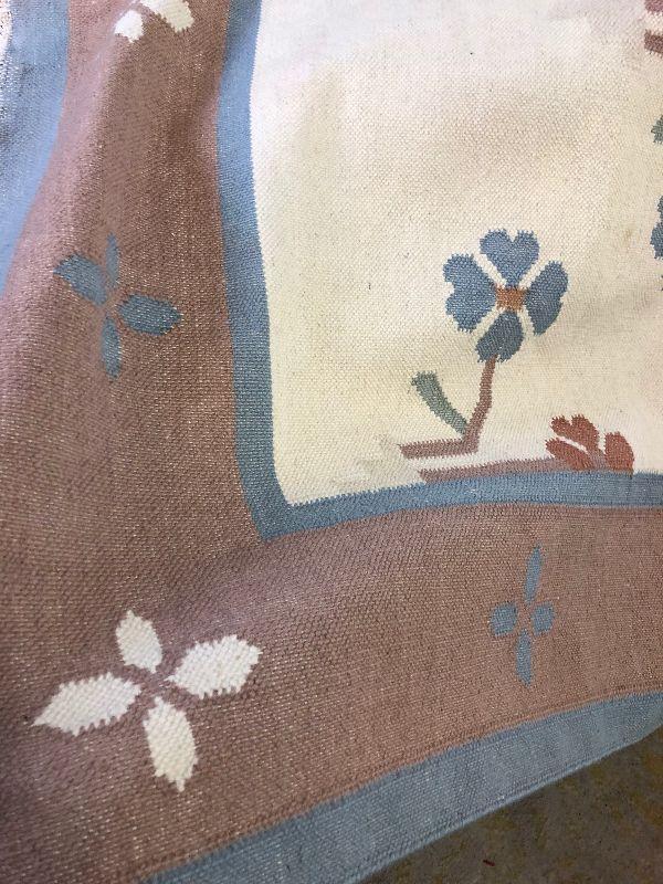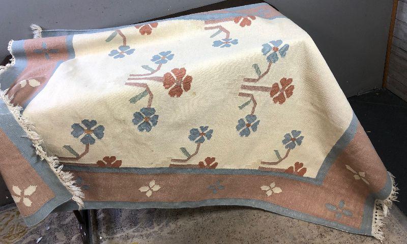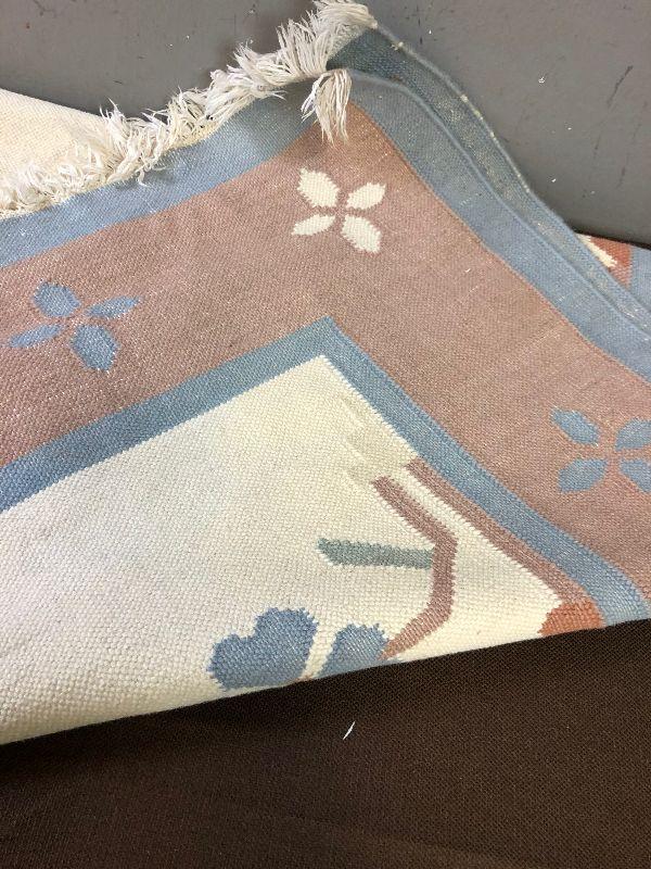 Dusty Blue and Dusty Rusty Rose. 49 x 68 a bit of wear but overall Nice Condition!