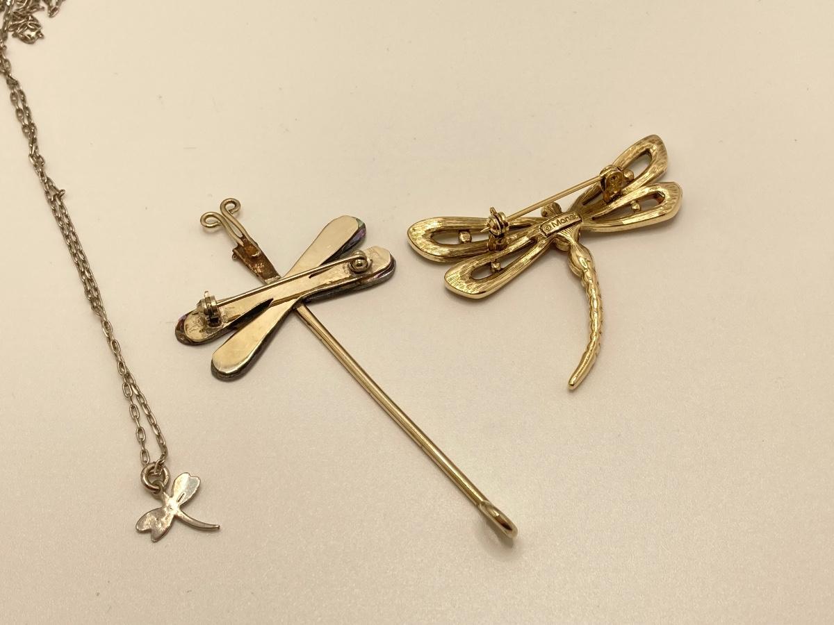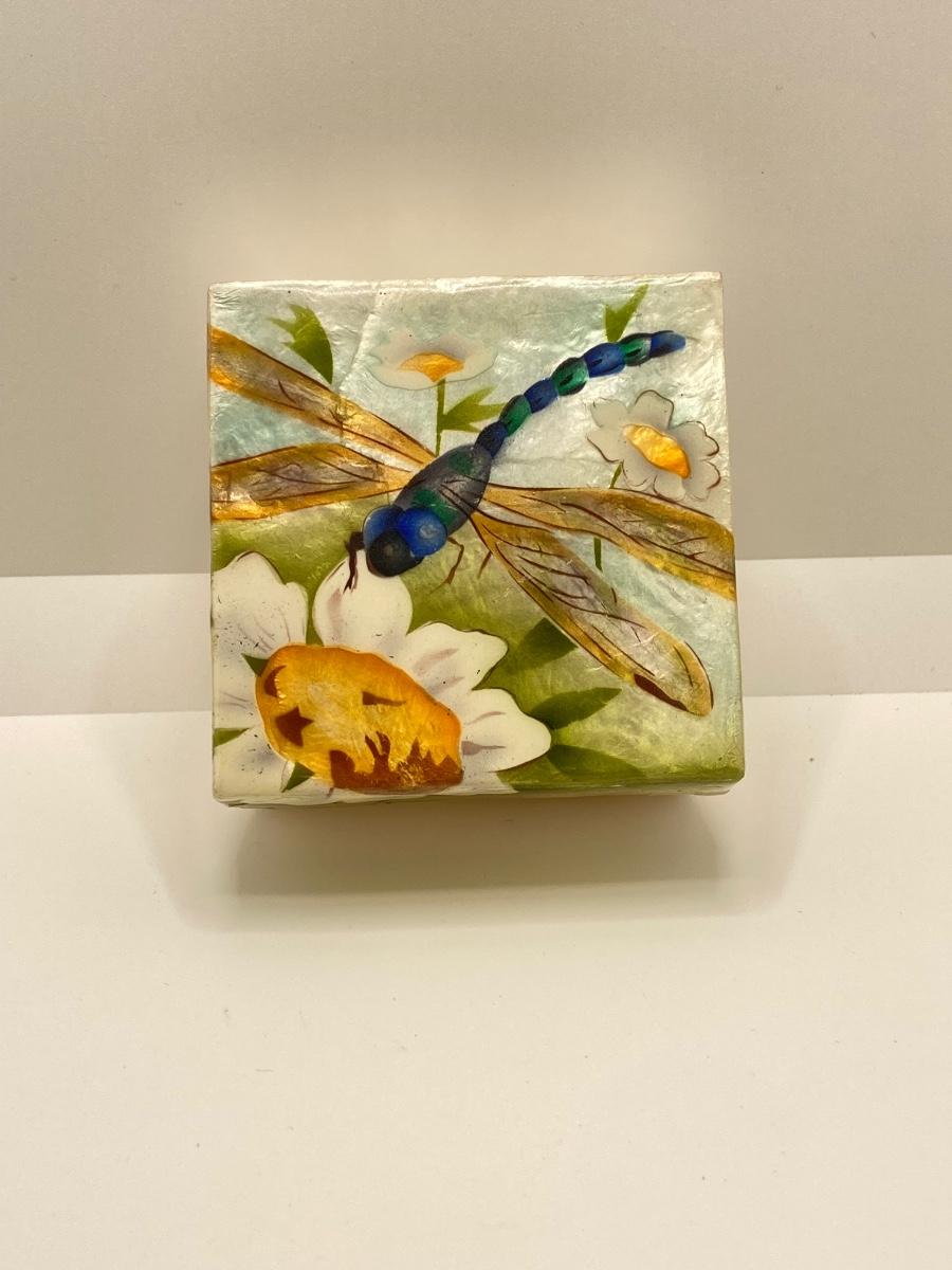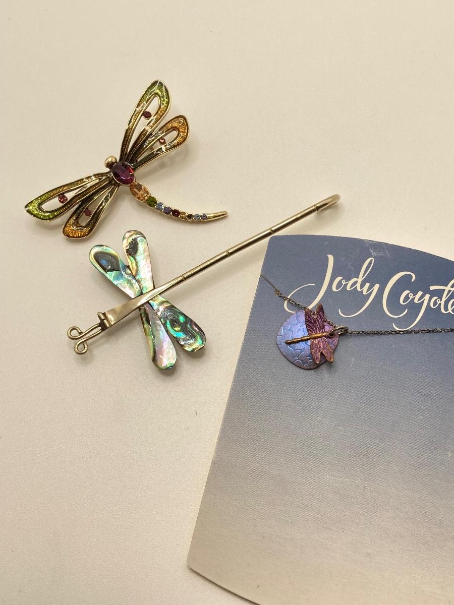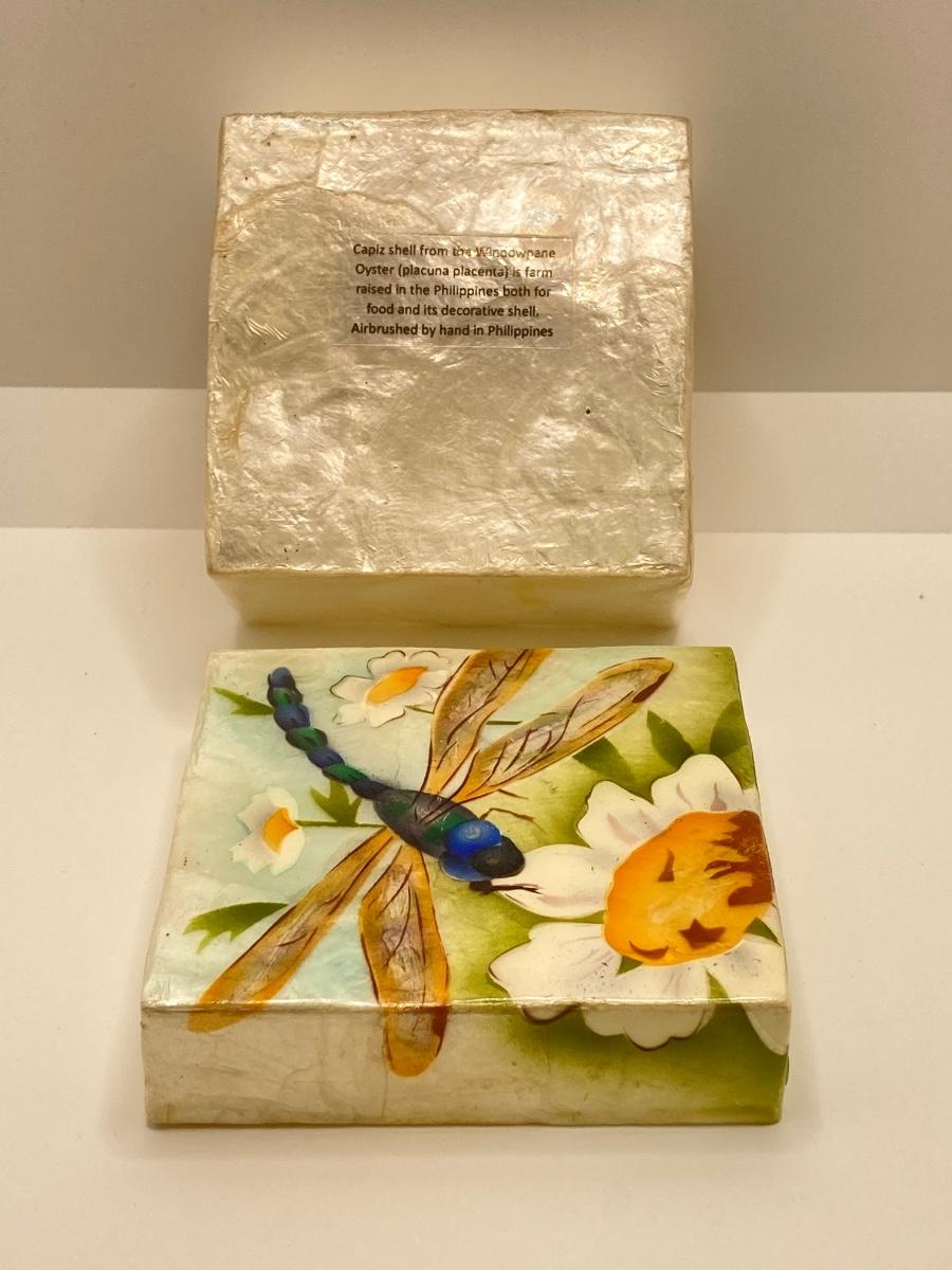 LOT 197: Dragonfly Themed Collection, Airbrushed Shell Trinket Box and Monet Jewelry