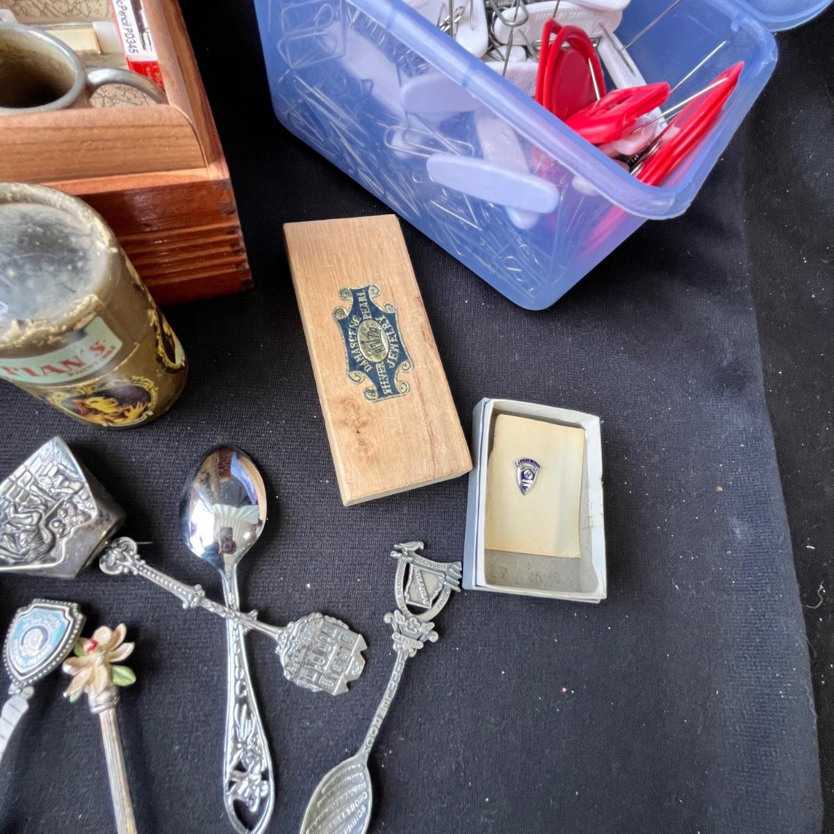 Junk drawer lot. Spoons are pewter or Silver plate.