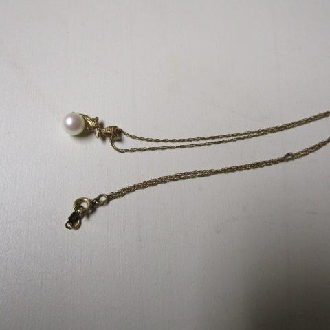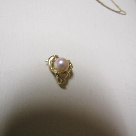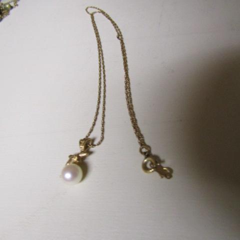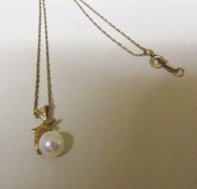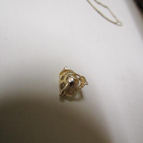 TWO 14K GOLD DOLPHIN AND PEARL PENDANTS WITH 1 GOLD TONE CHAIN