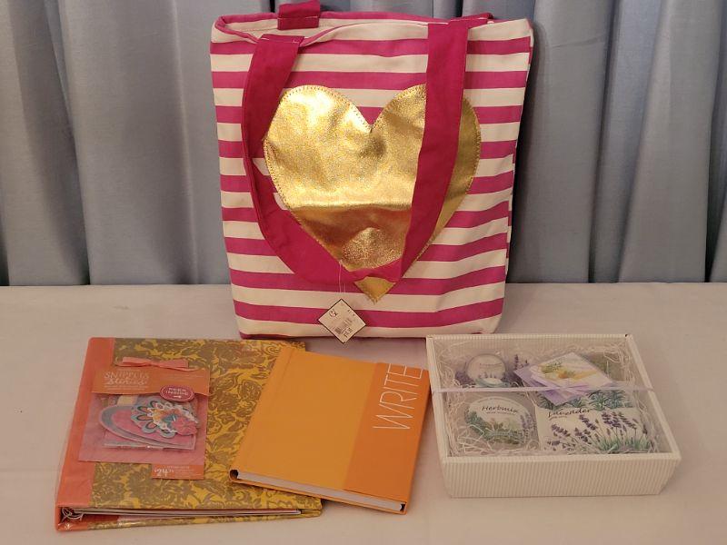 Lot 197: New Tote Bag, Journal, Scrapbook and Bath Set