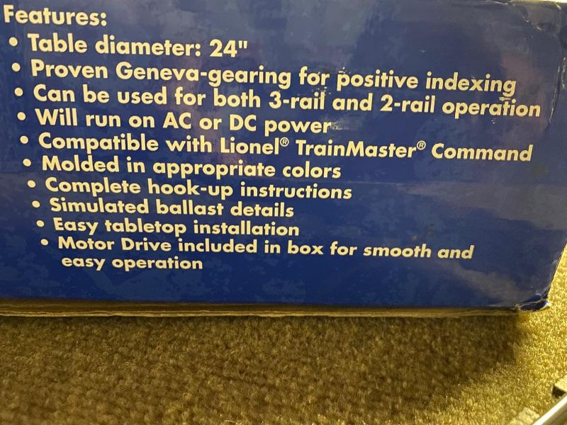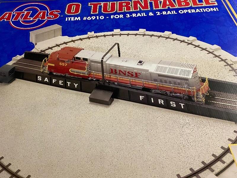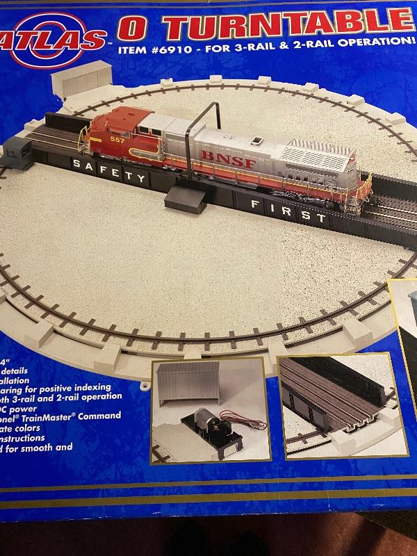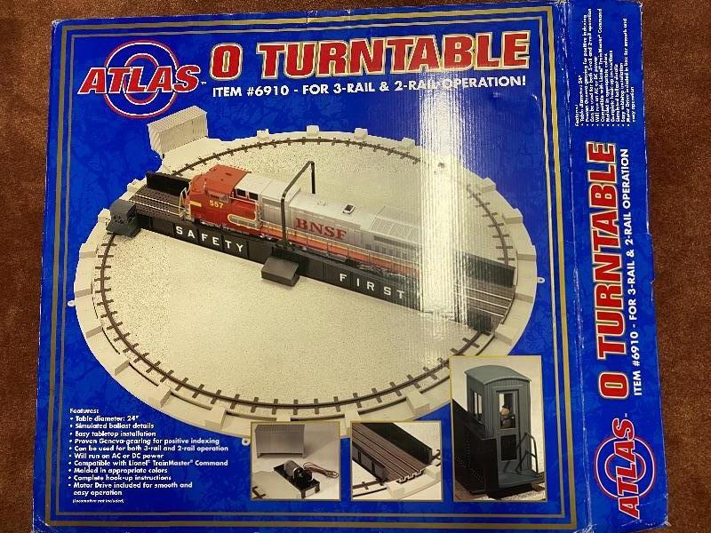 Altas turntable for 3 rail and 2 rail operation. Complete set in box. Please see all pictures for content of the lot, condition of the lot, and measurements if taken. Pictures are the best representation of the items listed and items are untested unless indicated in description. Thank you for looking and have fun bidding!