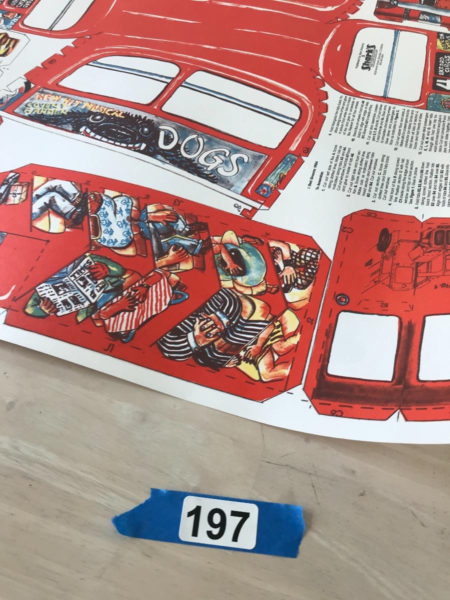 London Bus depicts the busy city of London with it's many Red Buses, and the many strange people you see. This is a 3-D lithograth that looks as good today as the day it was printed! Three of these are available!!! Red Grooms is an American multimedia artist best known for his colorful pop-art constructions depicting frenetic scenes of modern urban life. Uncut and ready to either frame or build!! This thick litho can be cut and pasted to make oneself a 3-D London Bus, it was printed by Sharks Inc, with whom Grooms had a long and fruitful collaboration with. This has been rolled and will be rolled at pick-up. Amazing piece to find! Please see all pictures for content of the lot, condition of the lot, and measurements if taken. Pictures are the best representation of the items listed and items are untested unless indicated in description. Thank you for looking and have fun bidding!