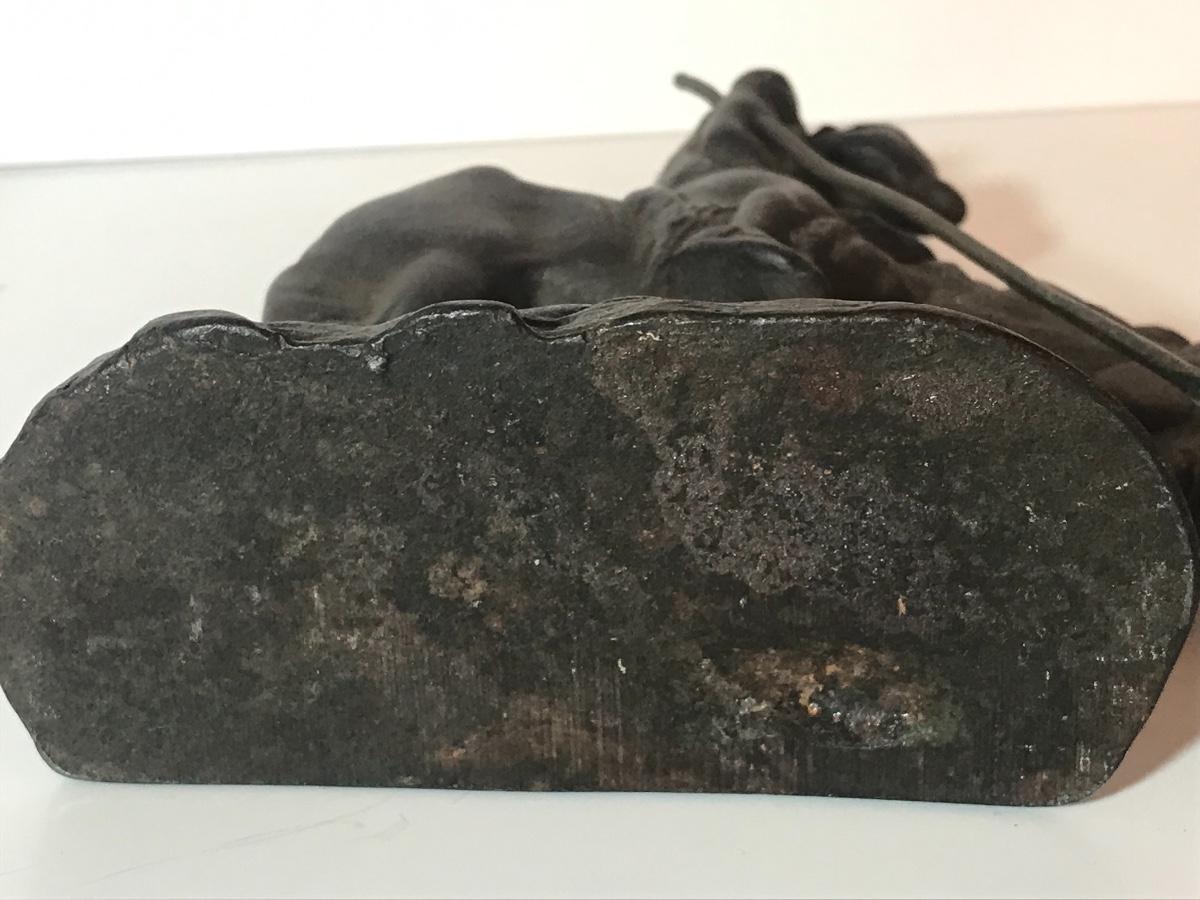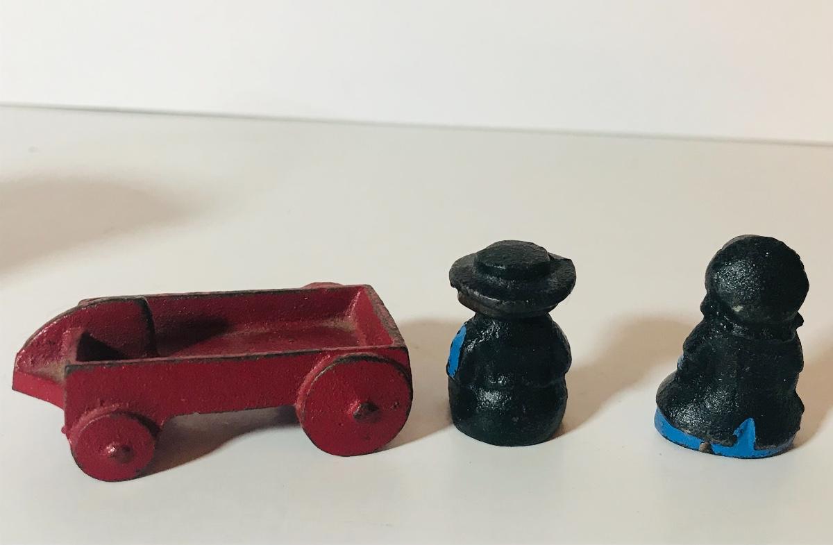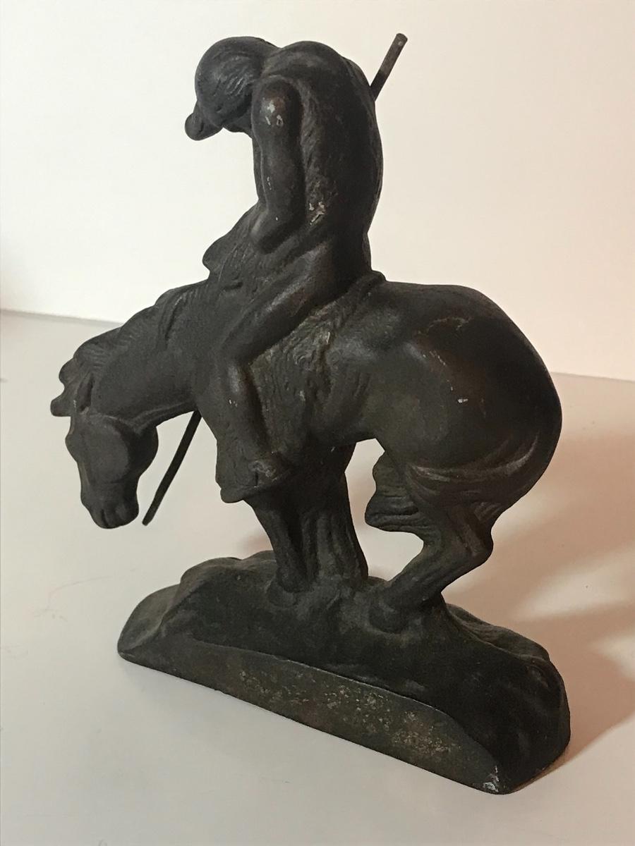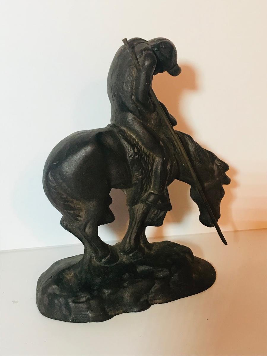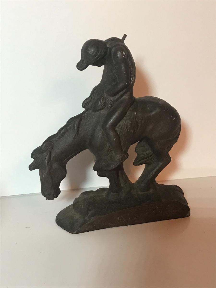 Amish boy and girl on wagon, a caldron, a door stop of horse and rider, and a crane on a bell. Please see all pictures as they are the best representation of the items. The pictures show condition, measurements if taken, and what is included in the lot. Due to the large amount that we photograph and the time frame, we are not always able to take measurements. All items unless noted, are pre-owned and have been used. If you purchased furniture, you must bring help. We do not allow one person to carry large furniture out on their own. Bring help, tools and a truck for the safety of our client’s homes, and your personal safety. Company policy. Thank you.