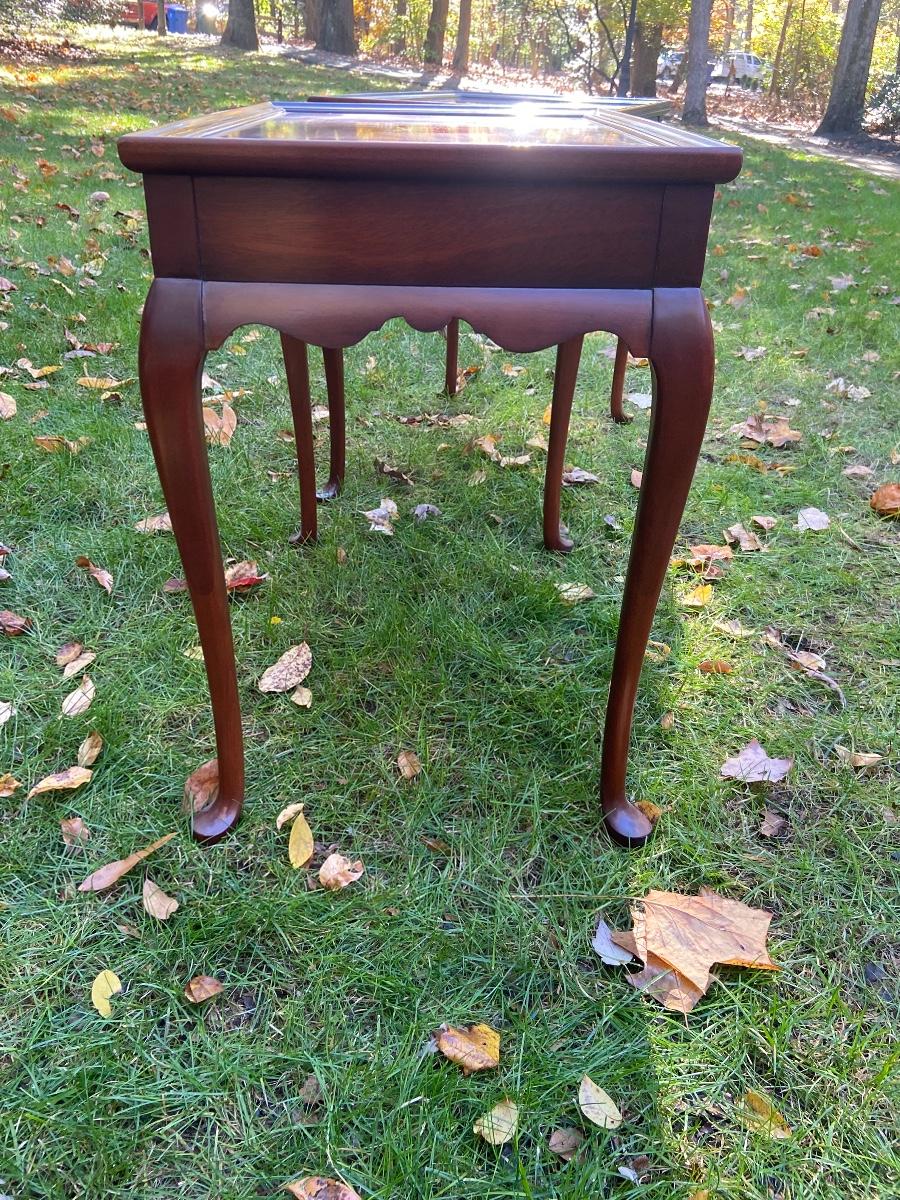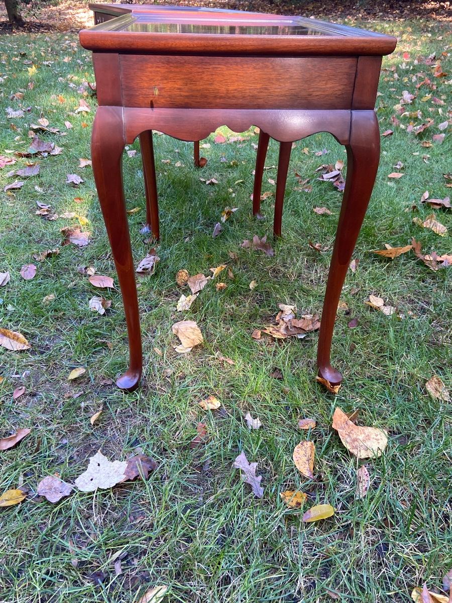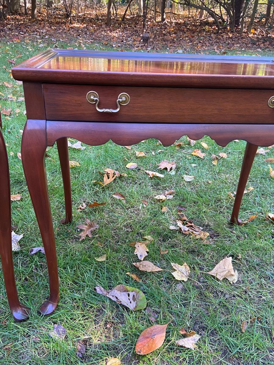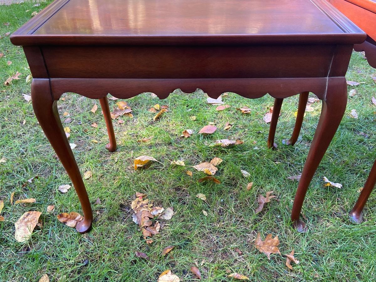 Antique Mahogany bedside/end tables with Queen Anne legs. 29"L x 18"W x 26"H. Please see all pictures as they are the best representation of the items. The pictures show condition, measurements if taken, and what is included in the lot. Due to the large amount that we photograph and the time frame, we are not always able to take measurements. All items unless noted, are pre-owned and have been used. If you purchased furniture, you must bring help. We do not allow one person to carry large furniture out on their own. Bring help, tools and a truck for the safety of our client’s homes, and your personal safety. Company policy. Thank you.
