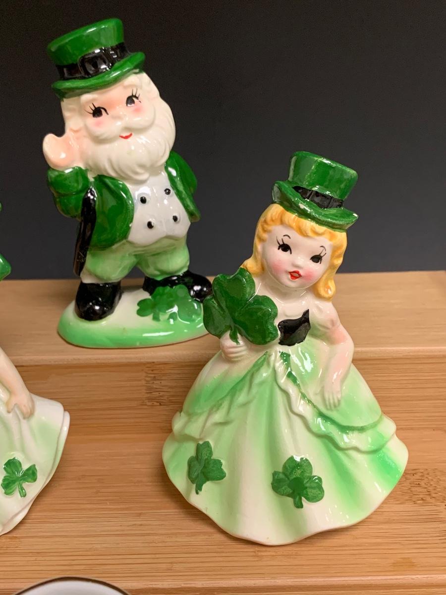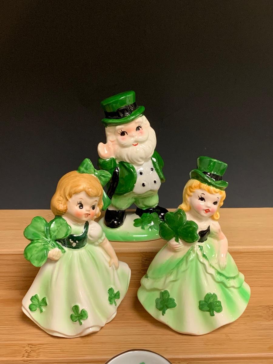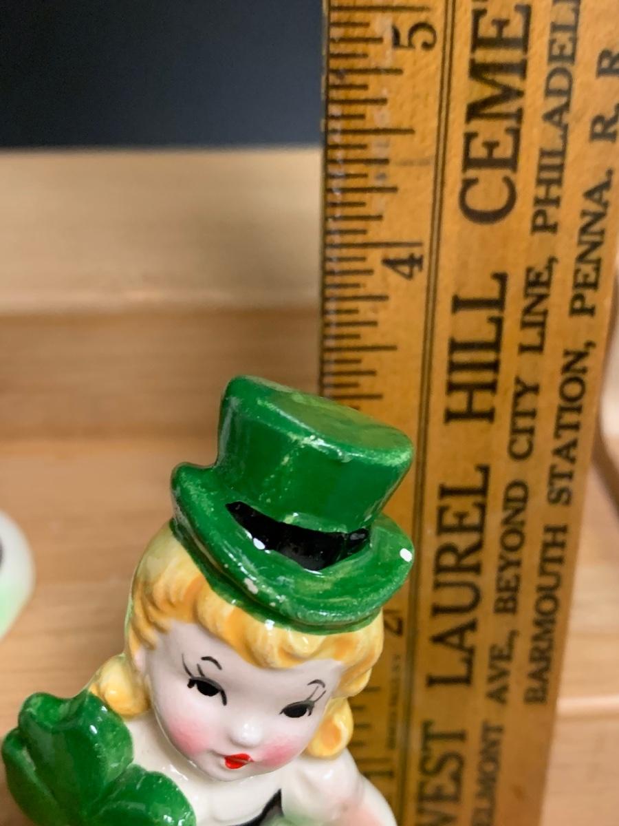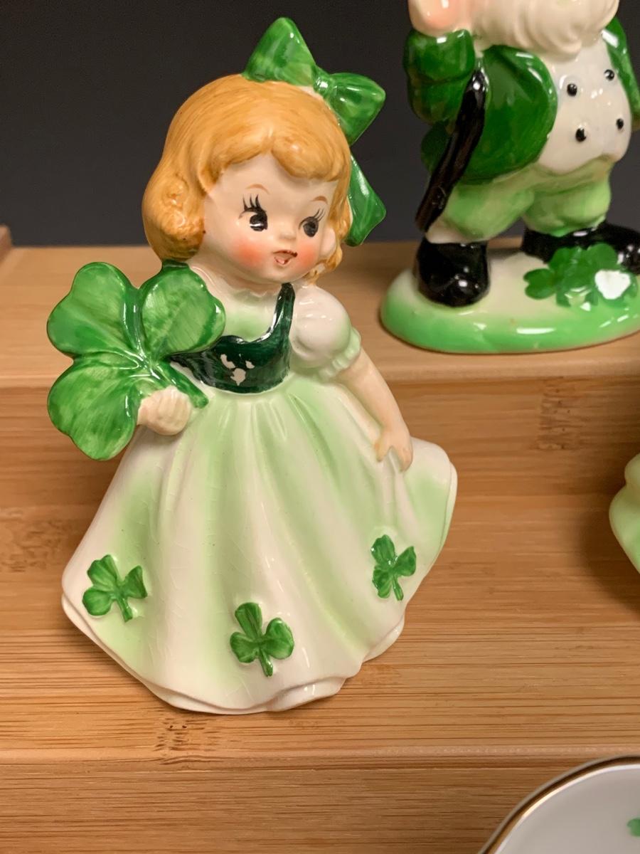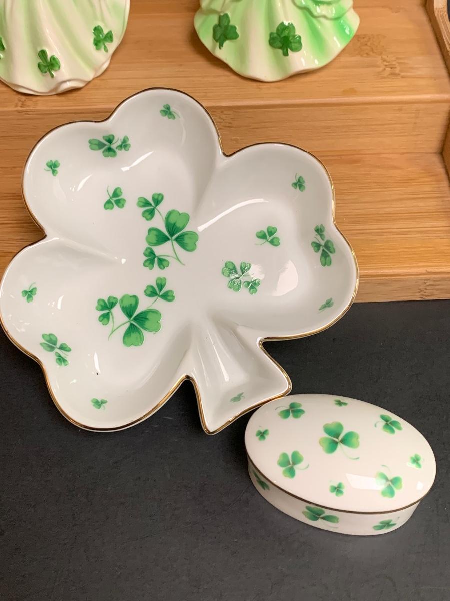 Vintage dainty Irish figurines along with a Lefton shamrock, Japan trinket box to bring you the luck of the Irish. Please see all pictures as they are the best representation of the items. The pictures show condition, measurements if taken, and what is included in the lot. Due to the large amount that we photograph and the time frame, we are not always able to take measurements. All items unless noted, are pre-owned and have been used. If you purchased furniture, you must bring help. We do not allow one person to carry large furniture out on their own. Bring help, tools and a truck for the safety of our client’s homes, and your personal safety. Company policy. Thank you.