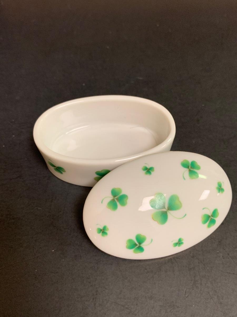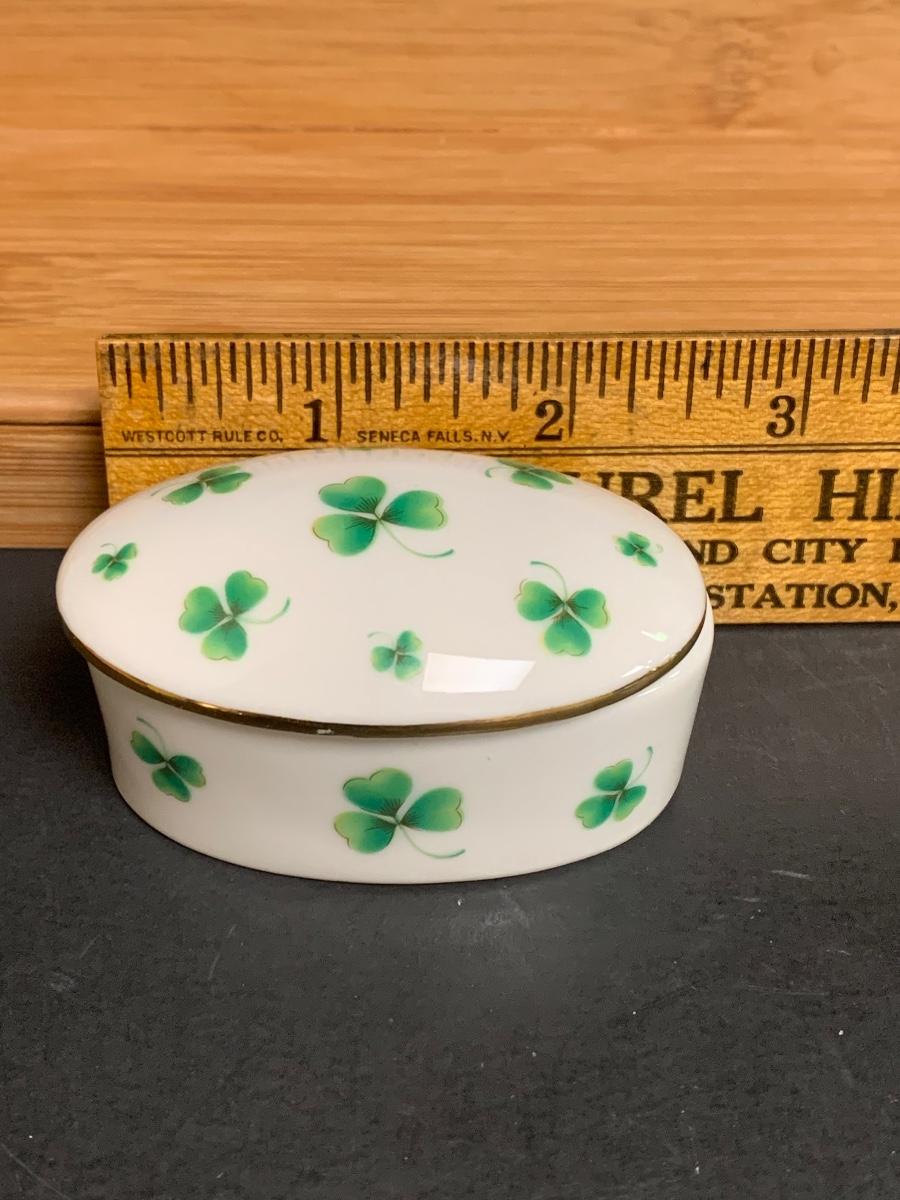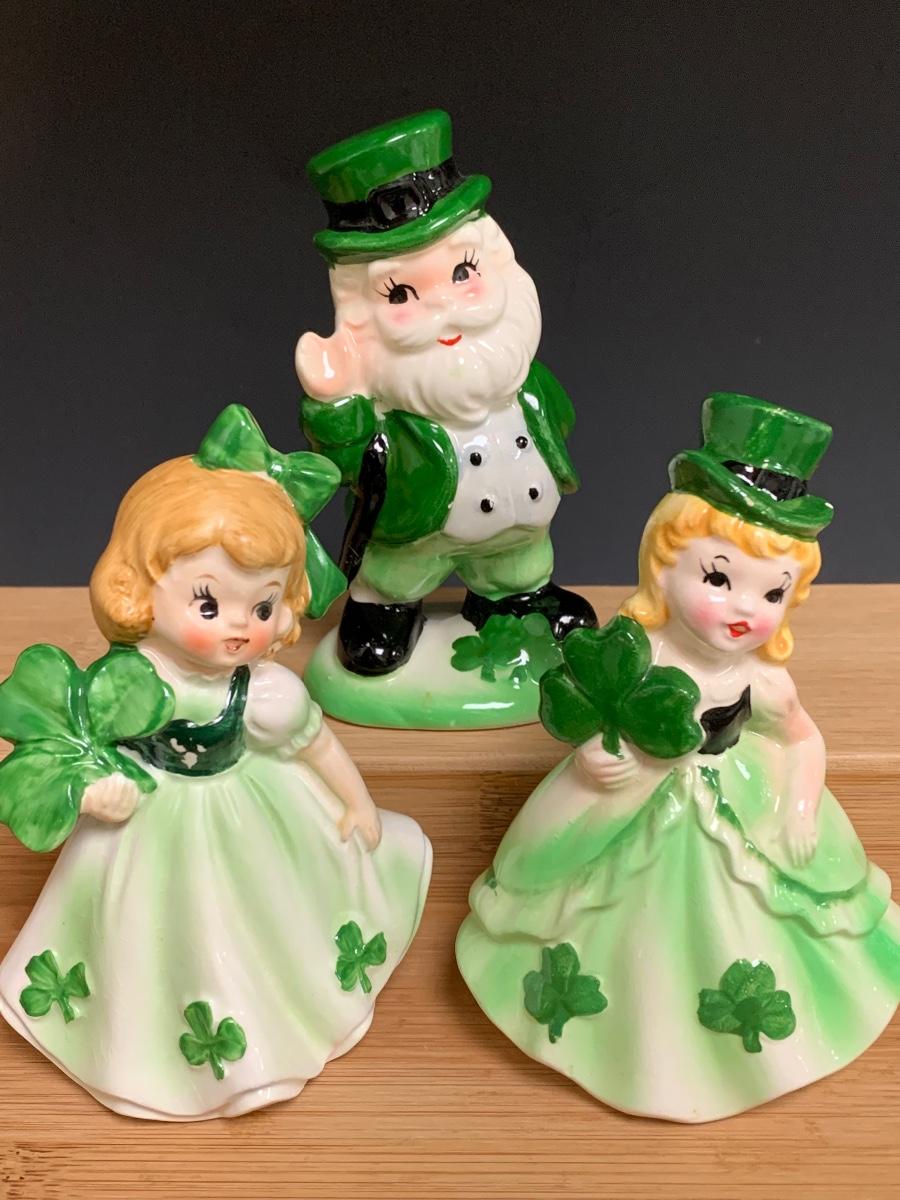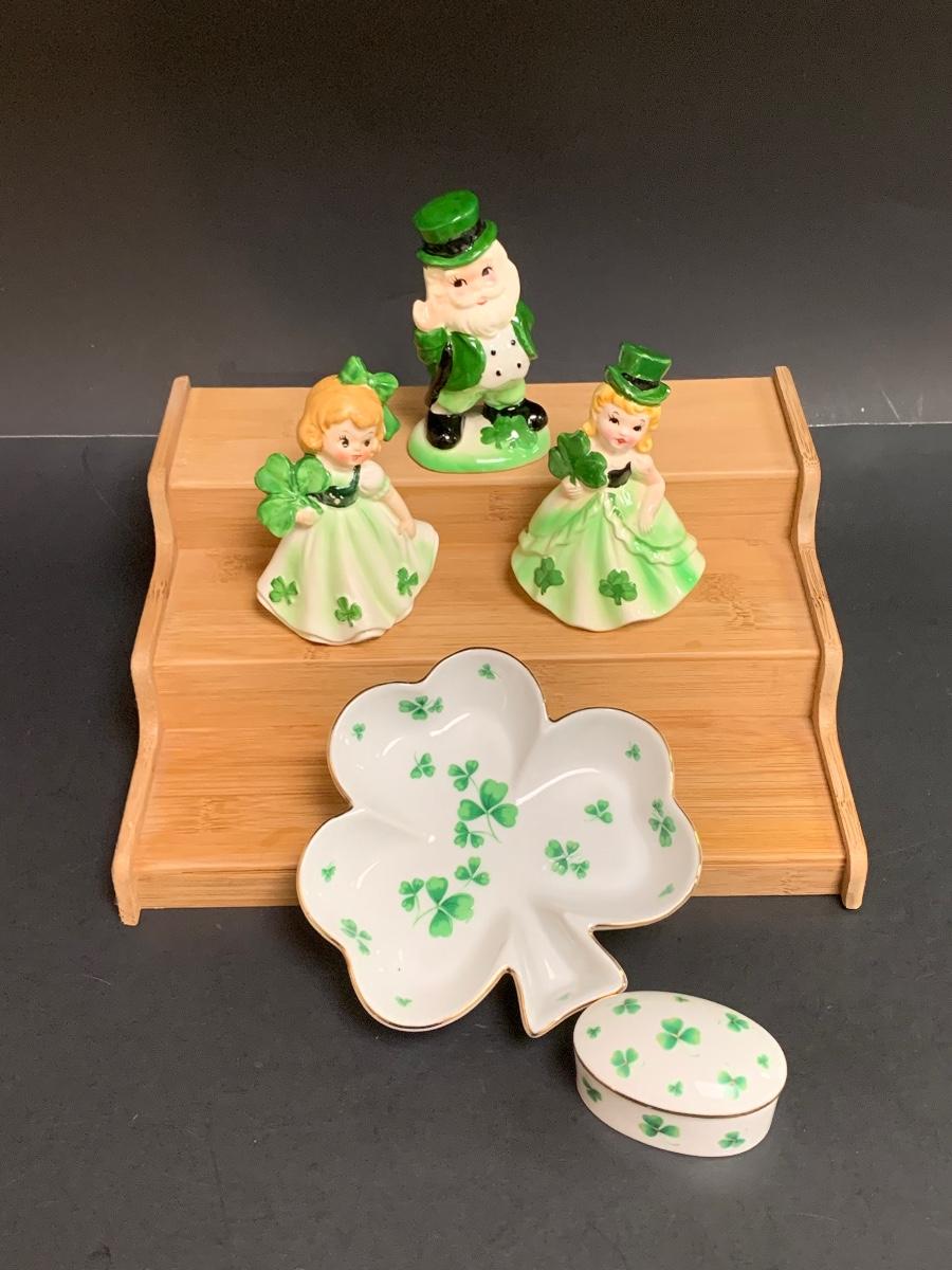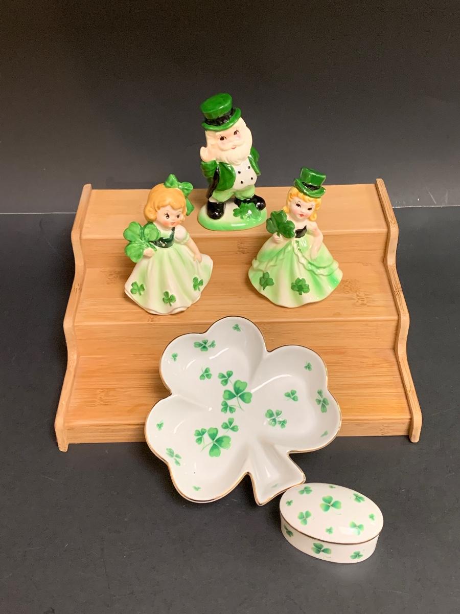 Vintage dainty Irish figurines along with a Lefton shamrock, Japan trinket box to bring you the luck of the Irish. Please see all pictures as they are the best representation of the items. The pictures show condition, measurements if taken, and what is included in the lot. Due to the large amount that we photograph and the time frame, we are not always able to take measurements. All items unless noted, are pre-owned and have been used. If you purchased furniture, you must bring help. We do not allow one person to carry large furniture out on their own. Bring help, tools and a truck for the safety of our client’s homes, and your personal safety. Company policy. Thank you.
