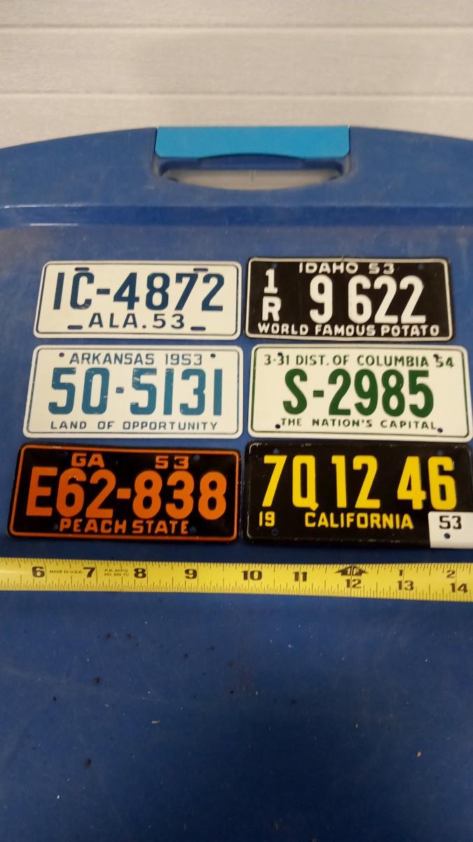 LOT 197   SIX SMALL VINTAGE LICENSE PLATES