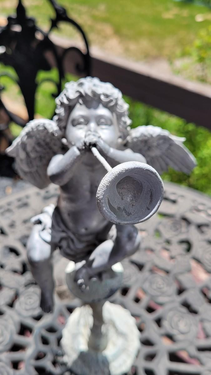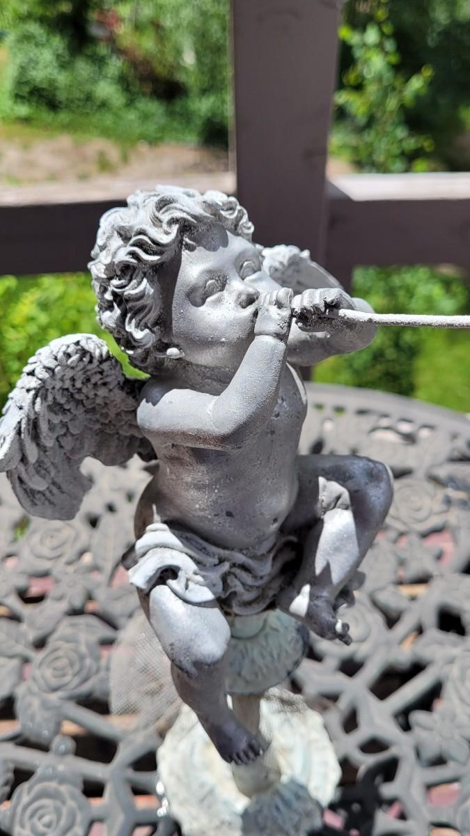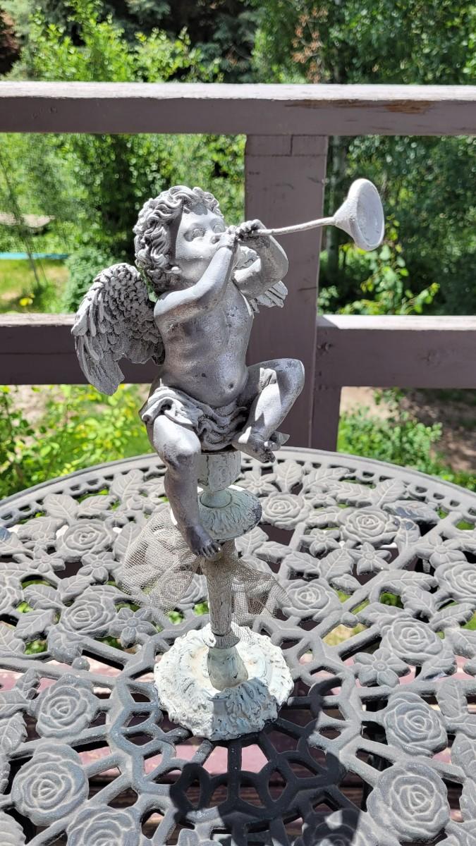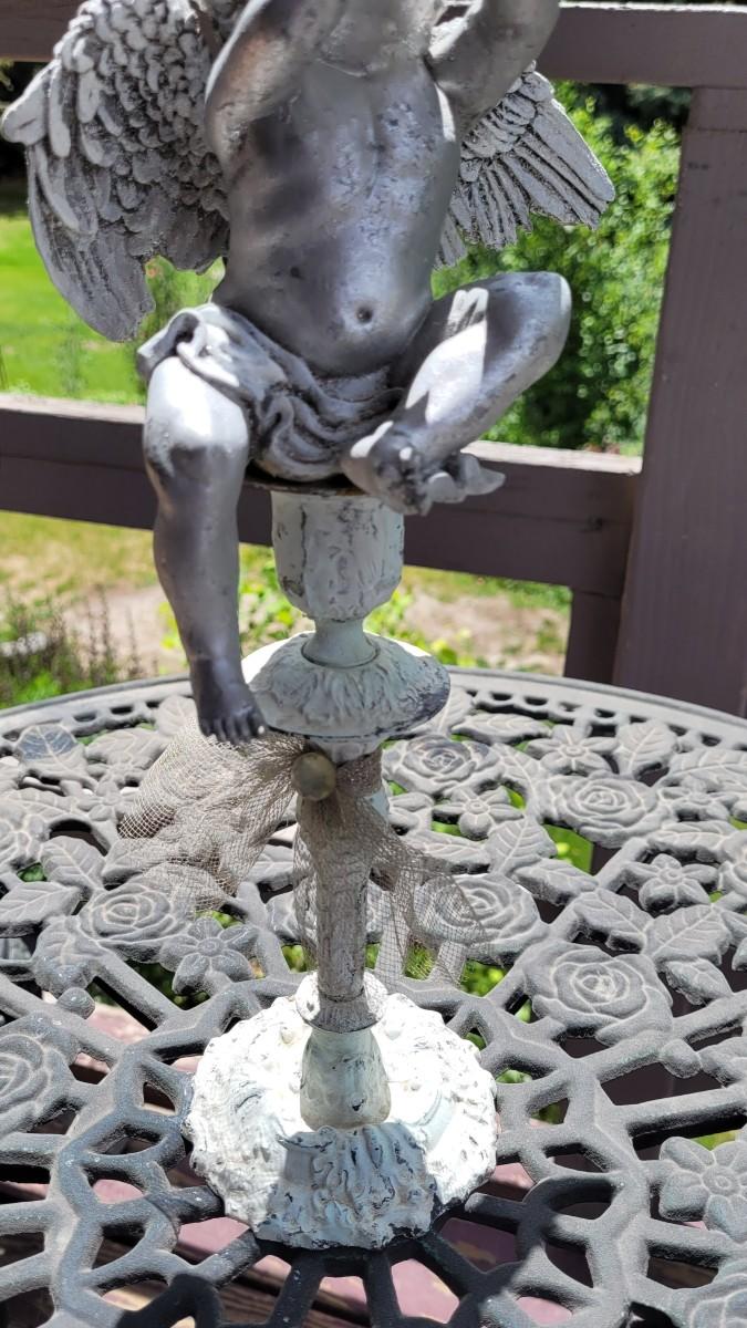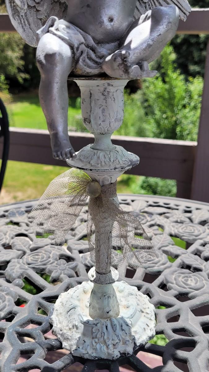 Lot 197: Vintage Plaster Angel  Sitting on a Metal Candleholder