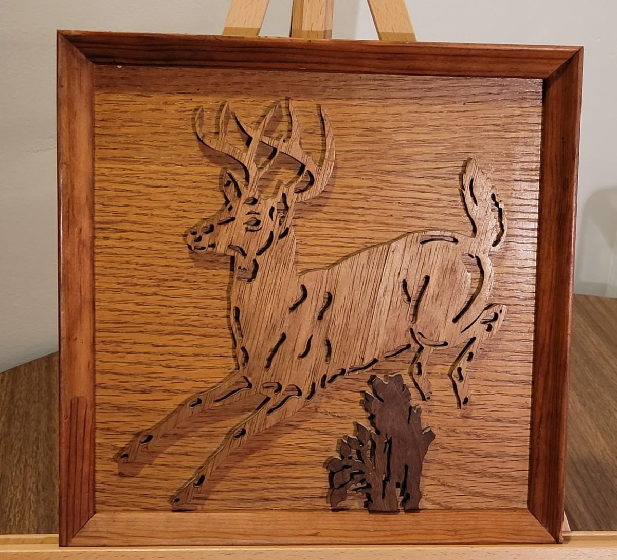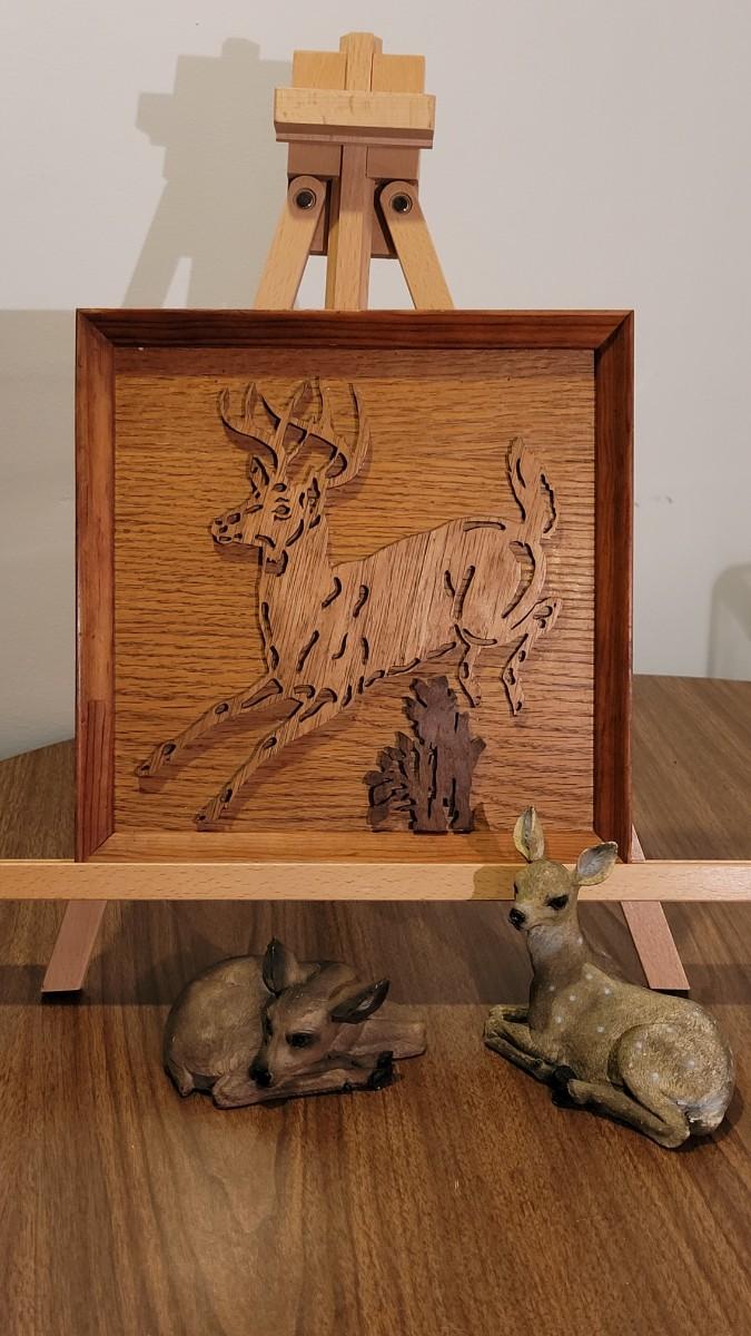 Lot 197: Wood Deer Art by DD Walker and (2) Deer Figures