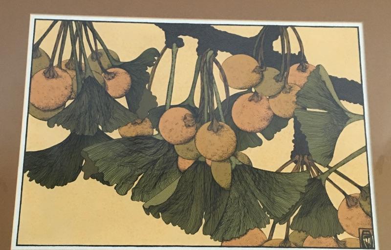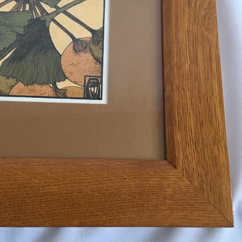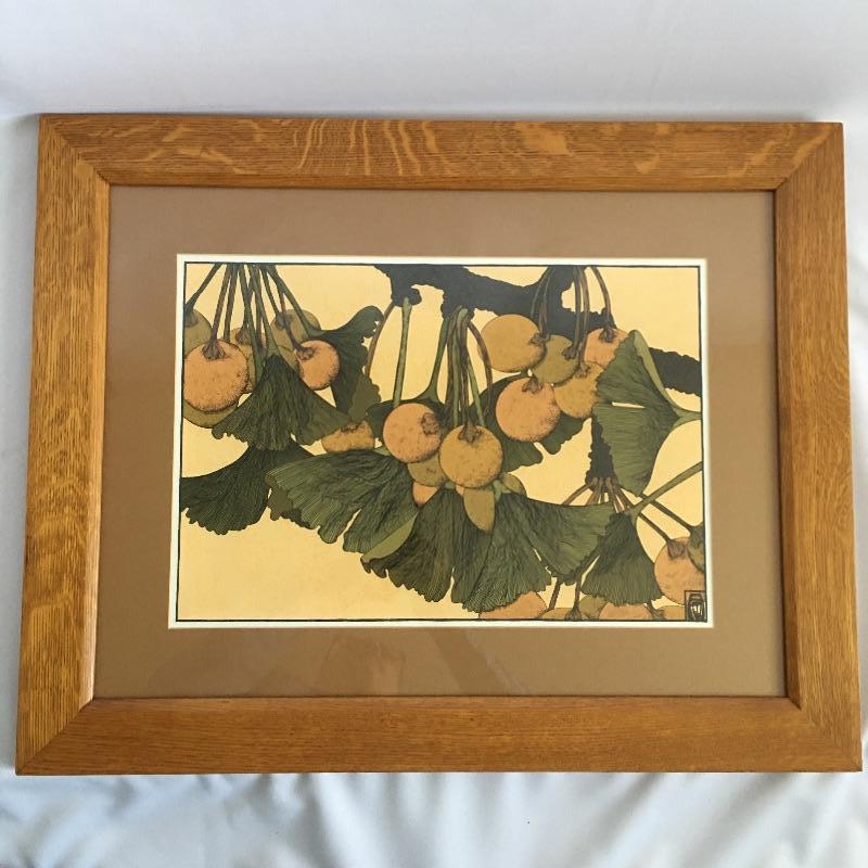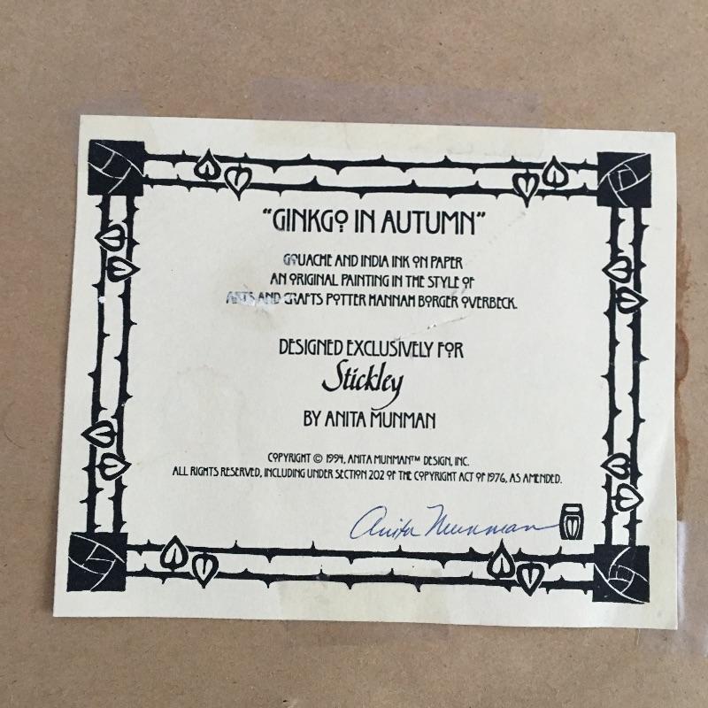 Anita Munman artwork signed on back titled “Ginkgo In Autumn” in a Arts & Crafts style frame.