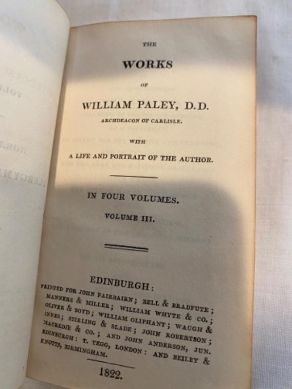 Lot of four volumes of 1822 Paley’s Works